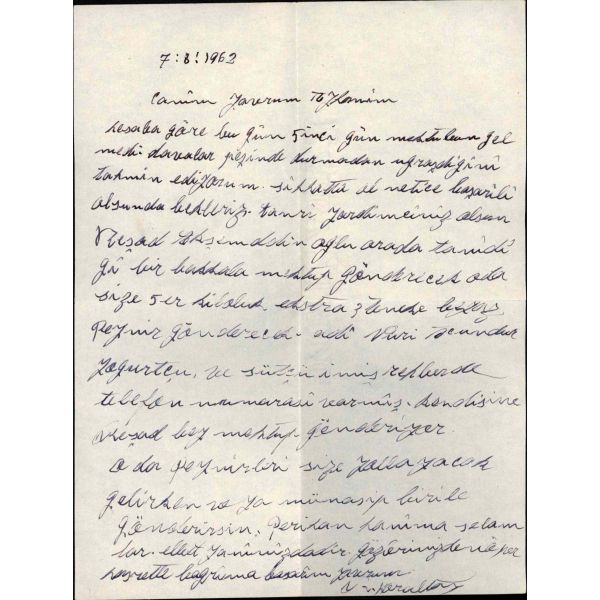 1950 - 1960 yılları arasında TBMM Başkanlığı yapan ve 27 Mayıs Darbesi´yle görevine son verilerek idamla yargılanan ancak cezası ömür boyu hapse çevrilen Refik Koraltan´ın (1889 - 1974) cezaevinden kızına yazdığı 7.8.1962 tarihli mektup…