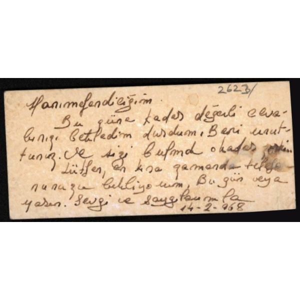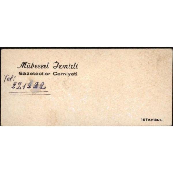 Ölümünden sonra hakkında Cemal Süreya´nın çok güzel bir şiir yazdığı Mübeccel İzmirli (1934 - 1982); elinde kaleminden başka bir şeyi olmayan ama erkek egemen edebiyat dünyasında var olmayı beceremeyen, hüzünlü, kırık ve kırgın bir şair ve yazardır. Müzayedeye sunulan ürün, Mübeccel İzmirli´nin Gazeteciler Cemiyeti´nde redaktörlük yaptığı tarihlerde, bir türlü ulaşamadığı bir "hanımefendi"ye yazılmış notunu içeriyor.
