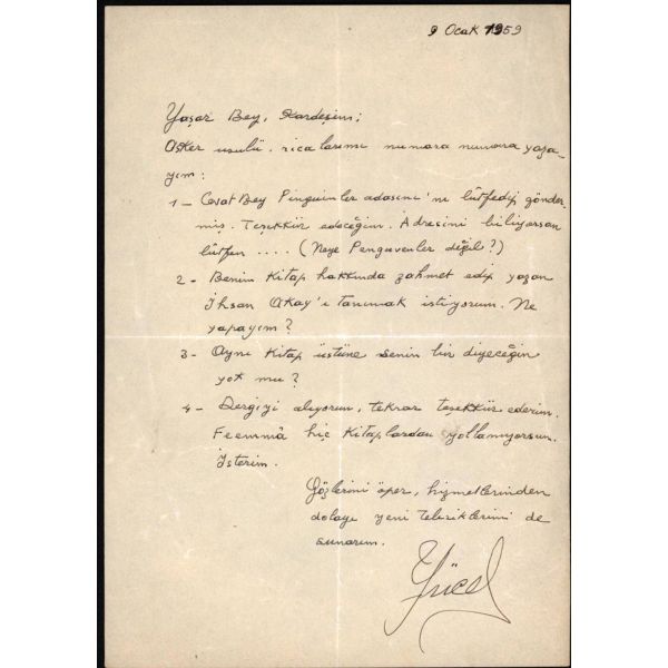 Türkiye´nin en önemli Milli Eğitim Bakanı ve en değerli kültür insanlarından biri olan Hasan Ali Yücel´in (1897 - 1961), Varlık dergisi ve Varlık Yayınları´nın kurucusu Yaşar Nabi Nayır´a gönderdiği ve "asker usulü" ricalarını sıraladığı mektubu…