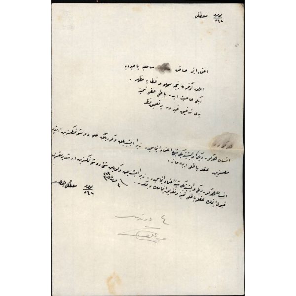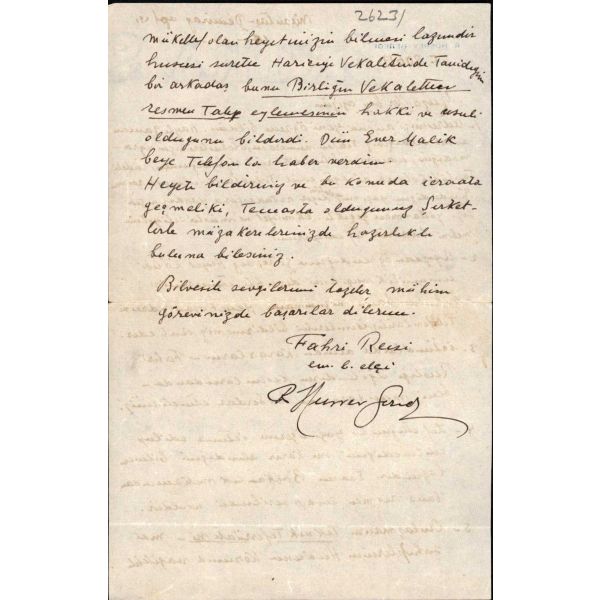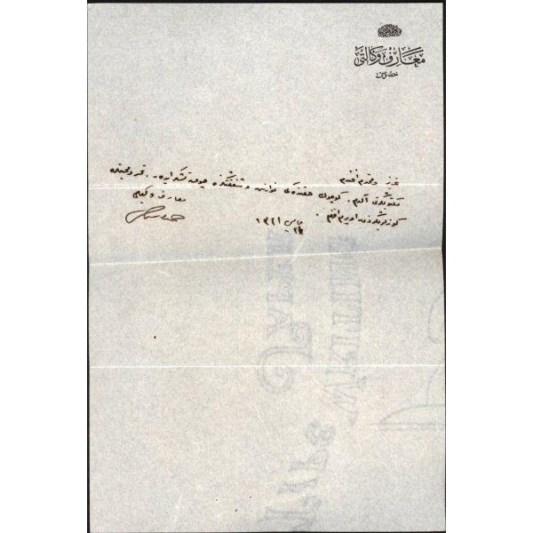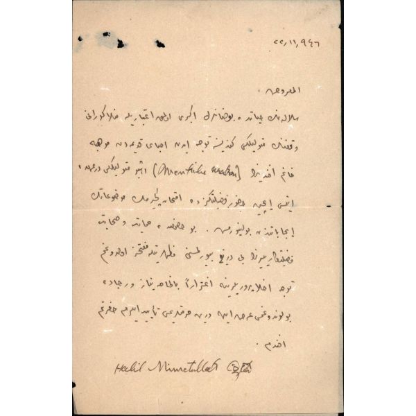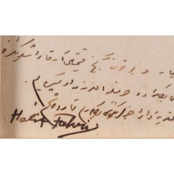 Edebiyata Fecr-i Âti topluluğu içinde başlayan ve sonradan Milli Edebiyatçılara katılan Hamdullah Suphi (1885 - 1966), Türk Ocağı kurucusu ve en uzun süreli başkanı, yazar ve çok ünlü bir hatiptir. Mehmed Akif´in yazdığı İstiklal Marşı´nı milletvekillerinin coşkulu alkışlarıyla mecliste ilk kez o okumuştur. Müzayedeye sunulan kısa mektup, ünlü hatibin Maarif Vekili olduğu dönemde yazılmıştır: Aziz ve Muhterem Kardeşim, Mektubunuzu aldım. Küçük hakkındaki nevâziş ve şefkatinize çok teşekkür ederim..." Maarif Vekaleti antetli kâğıda...