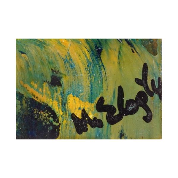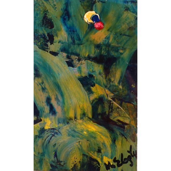 Şiire, Garip şiirine yakın bir anlayışla, sokak dilini ustaca kullanarak başlayan ve giderek II. Yeni´ye yaklaşan Metin Eloğlu (1927 - 1985) ressam olarak da lekeci bir anlayışla soyut ve figüratif çalışmalar yaptı. Çok sayıda sergi açtı ve çok sayıda ödül aldı. / Paspartulu, çerçeve içinde (Çerçeve boyutları: 32,5 X 37,5 cm)...