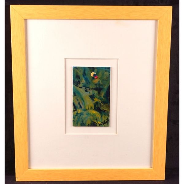 Şiire, Garip şiirine yakın bir anlayışla, sokak dilini ustaca kullanarak başlayan ve giderek II. Yeni´ye yaklaşan Metin Eloğlu (1927 - 1985) ressam olarak da lekeci bir anlayışla soyut ve figüratif çalışmalar yaptı. Çok sayıda sergi açtı ve çok sayıda ödül aldı. / Paspartulu, çerçeve içinde (Çerçeve boyutları: 33,5 X 45,5 cm)...