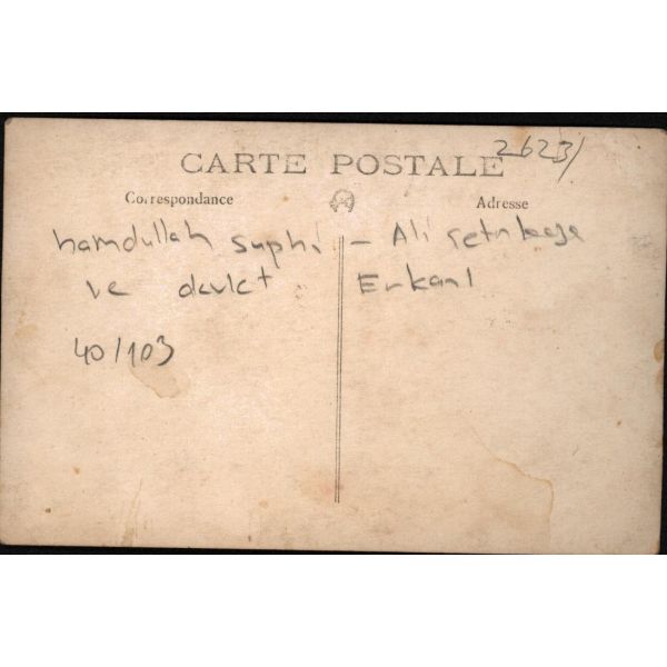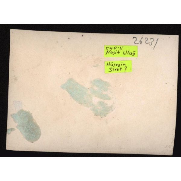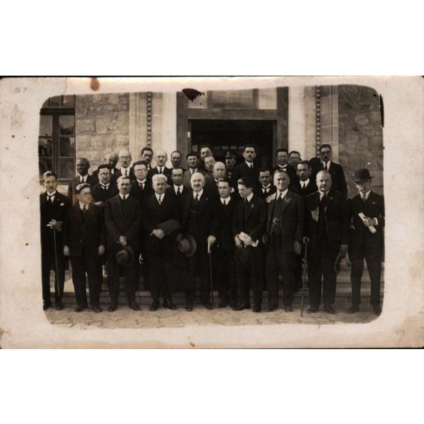 Türk Ocağı kurucusu ve en uzun süreli başkanı, yazar ve çok ünlü bir hatip olan Hamdullah Suphi Tanrıöver (1885 - 1966) ve "Kel Ali" lakabıyla anılan, asker, siyasetçi ve İstaiklal Mahkemesi başkanı Ali Çetinkaya (1878 - 1949), muhtemelen devlet erkânından bir toplulukla bir arada...