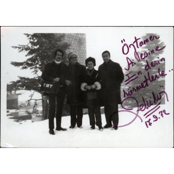 “Nerdesin, Orda Bir Köy Var Uzakta” gibi ünlü şiirlerin şairi, “Köşebaşı, Koçyiğit Köroğlu” gibi oyunların yazarı, Âşık Veysel’i Türkiye’ye tanıtan, eğitimci, halkbilimci, yazar ve şair Ahmet Kutsi Tecer’in (1901 – 1967), arkadaşlarıyla birlikte çekilmiş bir fotoğrafı…