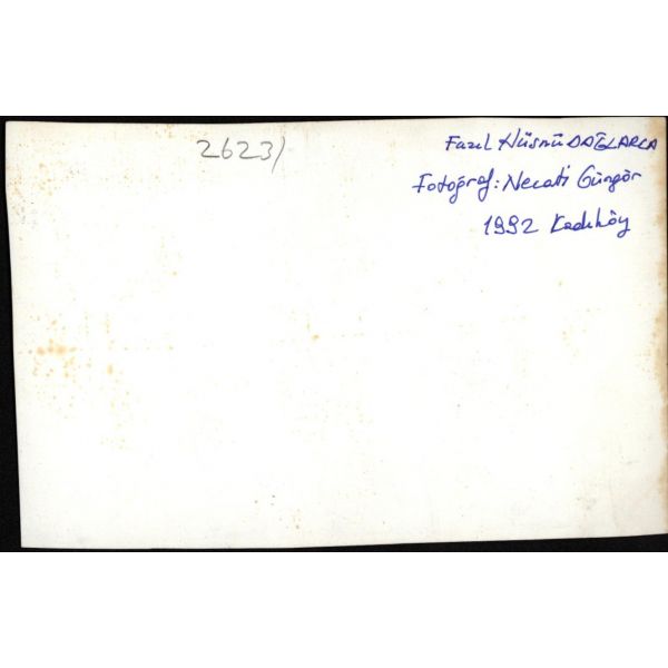 Kendisini II. Yeni şairi olarak görmese de II. Yeni´nin en önemli şairlerinden biri olarak tanınan Turgut Uyar´ın (1927 - 1985), dünyaca ünlü fotoğraf sanatçımız Ara Güler (1928 - 2018) tarafından çekilmiş bir fotoğrafı... Fotoğrafın arkasında, muhtemelen Ara Güler tarafından yazılmış "Turgut Uyar, şair" yazısı ve "Photographed by Ara Güler" kaşesi bulunuyor. / Paspartulu, çok şık çerçeve içinde (Çerçeve boyutları: 42 X 48 cm)...