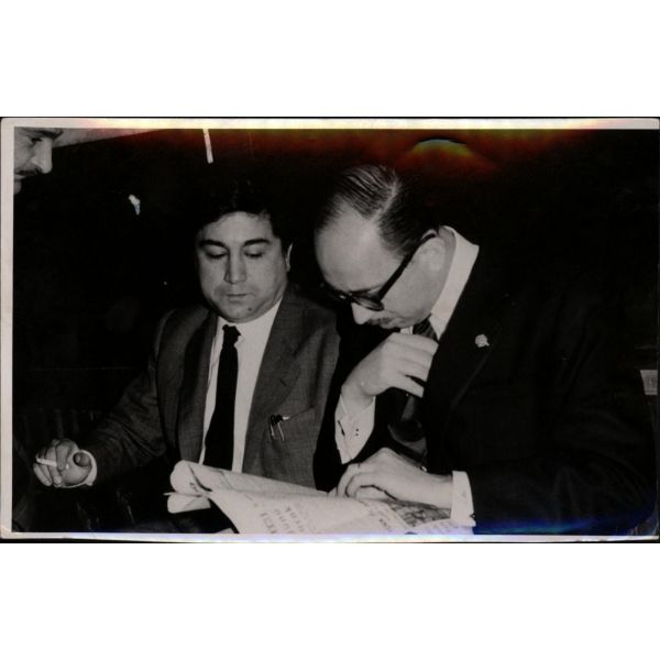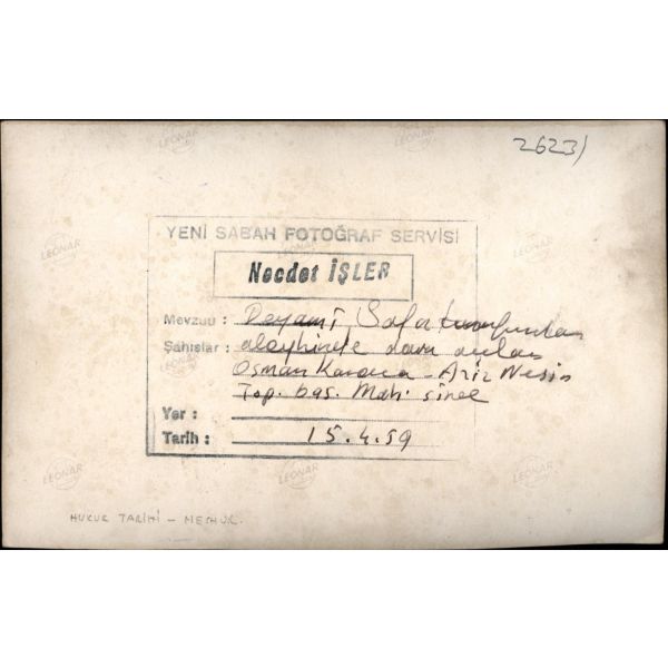 Türk mizah edebiyatının en yaratıcı, en çalışkan, en üretken kalemi, uluslararası yazarımız Aziz Nesin´le (1915 - 1995) yine Türk edebiyatının en çalışkan, en verimli yazarlarından Peyami Safa (1899 - 1961), 1959 yılında sert bir kalem kavgasına giriştiler. Fotoğraf, bu kavga neticesinde Peyami Safa tarafından mahkemeye verilen Aziz Nesin´in, ONK Ajansı kurucusu, gazeteci Osman Necmi Karaca ile davaya konu olan yazıları incelerken çekilmiş.