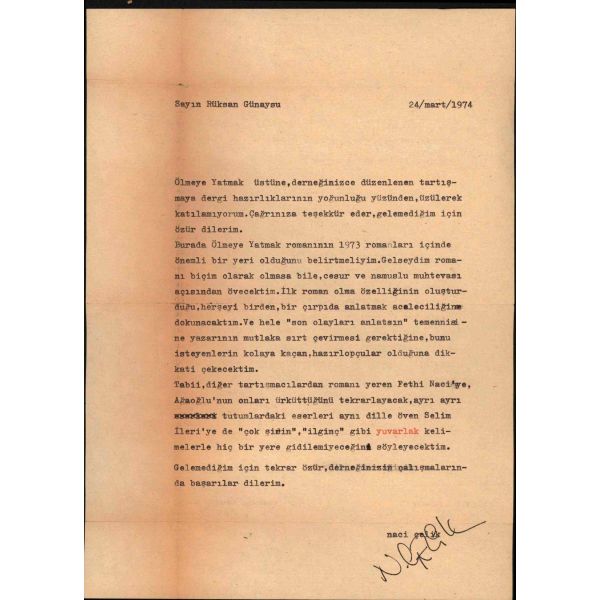 Dönemin edebiyatçılarının yakından tanıdığı, TED Ankara Koleji´nin efsane edebiyat öğretmeni Rüksan Günaysu´nun arşivinden çıkan, aralarında tanınmış şahsiyetlerin yer aldığı 26 adet fotoğraf ve Türkiye Defteri dergisi yöneticilerinden Naci Çelik´in kendisine yazdığı mektup...