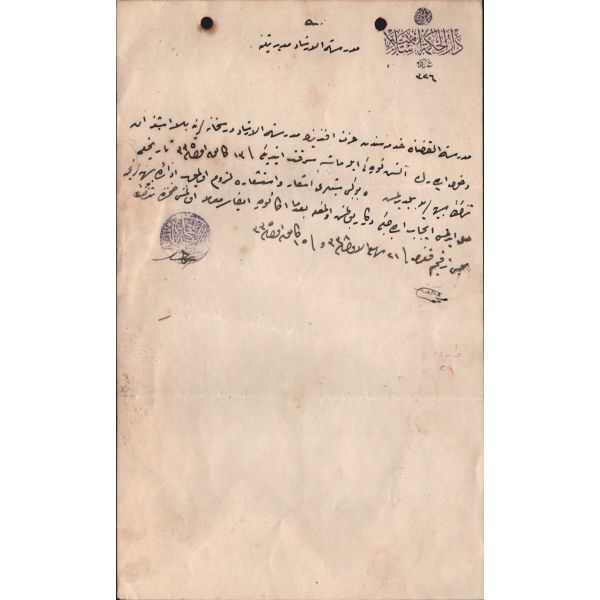 Bab-ı Fetva Darü´l-Hikmeti´l-İslamiye antetli kâğıt üzerine kaleme alınan mektup, Medresetü´l-Kudat hademesinin, Medresetü´l-İrşad sınıfına girerek maşa çalması hakkındadır.