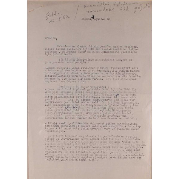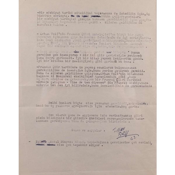 İlhan Berk (1918-2008) ”Şiiri her şeyden önce lirik olarak düşünmemden ileri geliyor. Bu bir çizgide ilerliyor, benim şiirim lirik ve görsel” ifadeleriyle şiirini tanımlayan, modern dünya şiirinin iki büyük şairi sayılan Arthur Rimbaud ve Ezra Pound´un şiirlerini çeviren, İkinci Yeni Akımı şairlerinden olan şairimizdir. Kaleme aldığı bu mektup ise Fransız Şiiri adlı kitabın içeriğine dairdir.