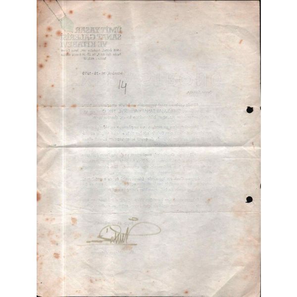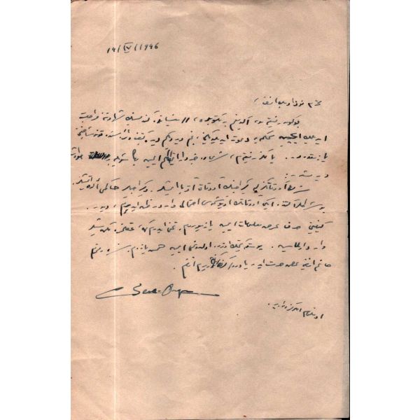 Özellikle felsefe ve dinler tarihi üzerine çalışmalarıyla tanınan, eğitimci – yazar Cemil Sena Ongun (1894 – 1981) tarafından yazılmış, 1946 tarihli mektup…