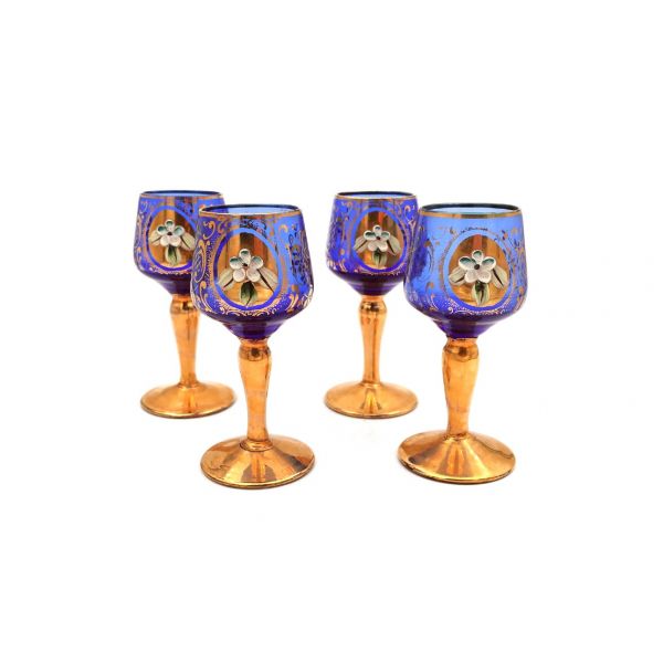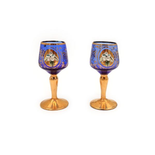 19. yüzyıl song beyaz hamurlu, turkuvaz astarlı, şeffaf sırlı, alttan yukarıya doğru incelen gövdeye sahip, üzeri siyah renk floral desenler ile dekore edilmiş zamanında ayran içmek için kullanılmış saplı bardak.