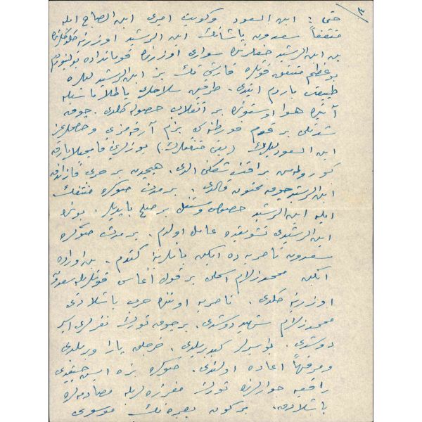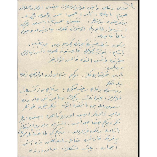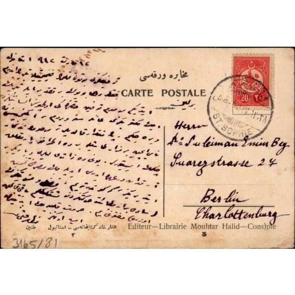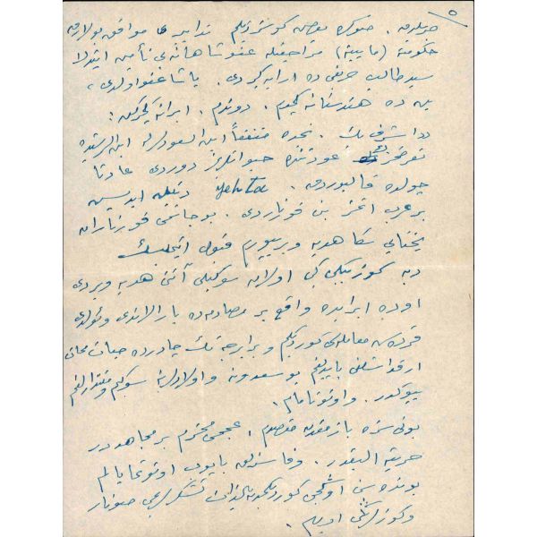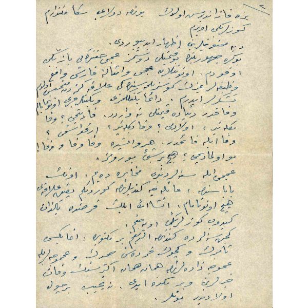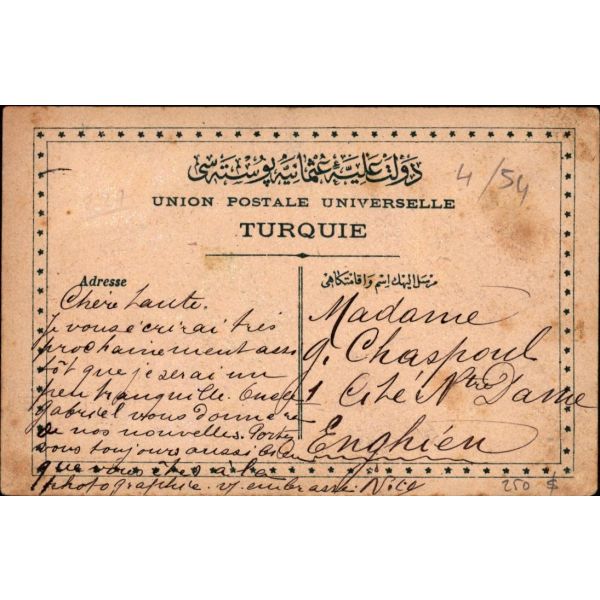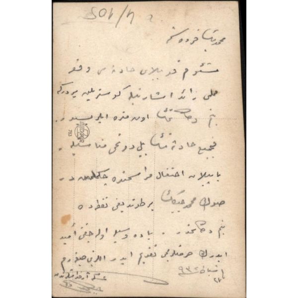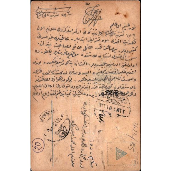 Şam´da 4. Ordu-yı Hümayun Menzil Müfettişliği Yaveri´ne babasından gönderilen mektup, "Bugün havanın letafetinden bilistifade köprü başına kadar indiğim sırada şu kartı irsal eyledim" ifadelerini içermektedir.