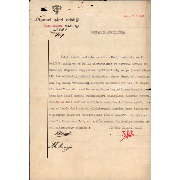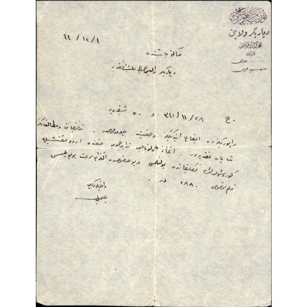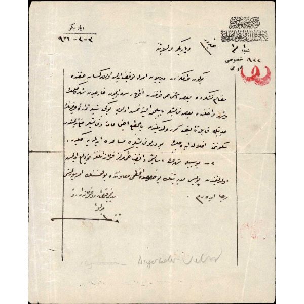 Şeyh Sait İsyanına ilişkin istihbarat mektuplaşmaları kapsamında olan mektup, "Agaz olunacak umumi tedbirler hakkında ordu müfettişiyle görüşülerek tekliflerde bulunulması ve bu hususda iltizam-ı sürat buyulması…" ifadelerini içermektedir.