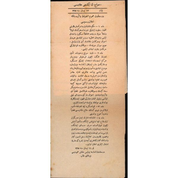 Sabah gazetesinin eki olarak yayınlanan ilanda, hükümetin isyancılara karşı koyduğu bir zamanda herkesin söz ve eylem birliği içerisinde hareket edip, sözlü veya yazılı yollarla halkı galeyana getirecek her türlü davranıştan uzak durması çağrısı yapılmıştır.
