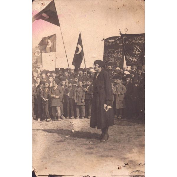 Fotoğrafta görülen pankart üzerinde "Şehid-i muhterem-i vatan Ali Şükrü Bey..." yazılıdır... Büyük Millet Meclisi'nde Mustafa Kemal'e sert muhalefetiyle tanınan Ali Şükrü Bey, Topal Osman tarafından öldürülmüş ve cesedi olaydan birkaç gün sonra Çankaya Köşkü bahçesinde bulunmuştur. Olayla ilgili olarak gözaltına alınmak istenen Topal Osman, adamlarıyla birlikte güvenlik güçlerine ateşle mukabele etmiş ve çıkan çatışmada öldürülmüştür.