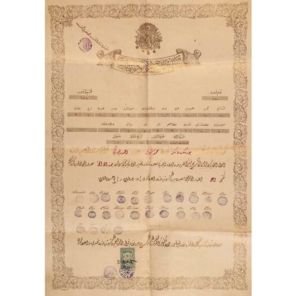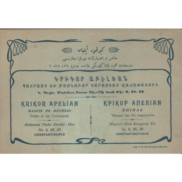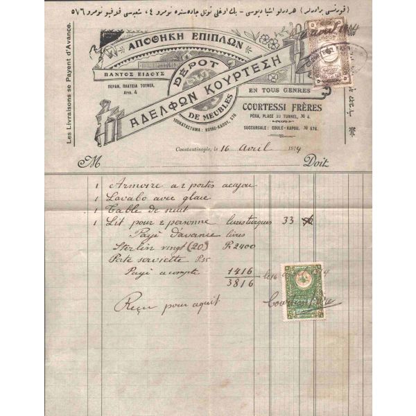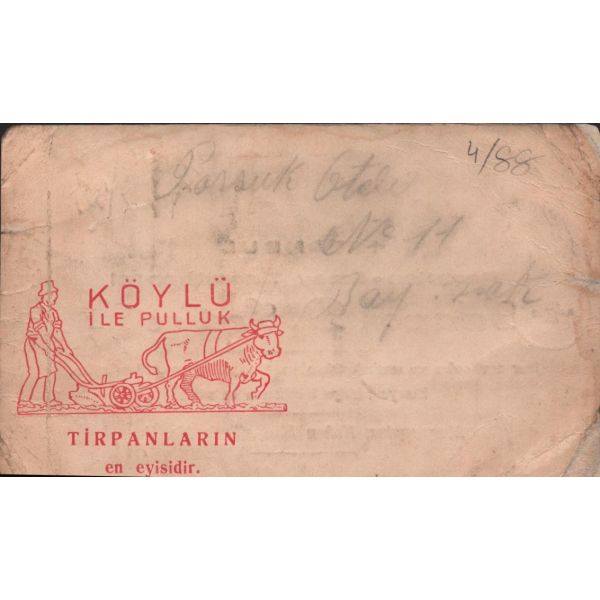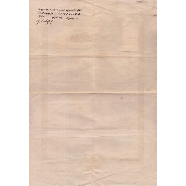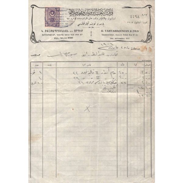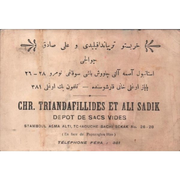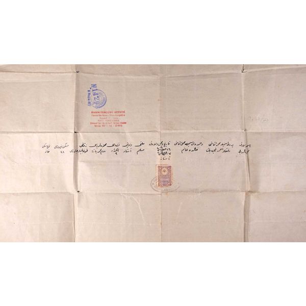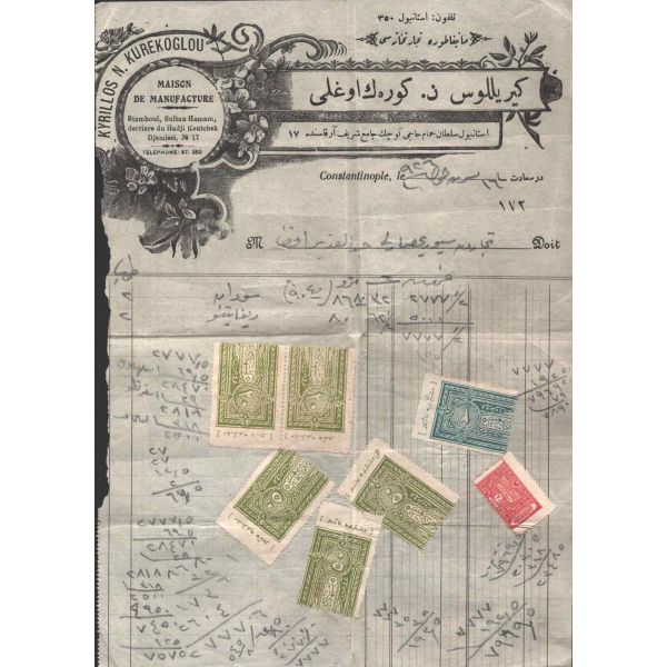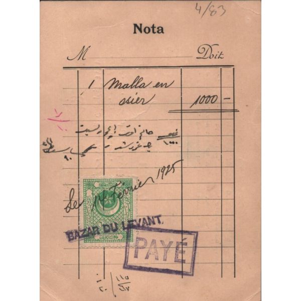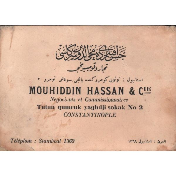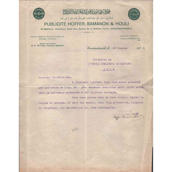Hoffer Samanon ve Houli İlanat Acentası tarafından ıslak imzalı ve mühürlü haliyle, muhatabının biriken borçlarının ödenmesine ilişkin yazılan mektup. Bank-Post 1921 filigranlı kağıda basılmıştır.
