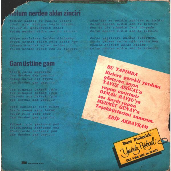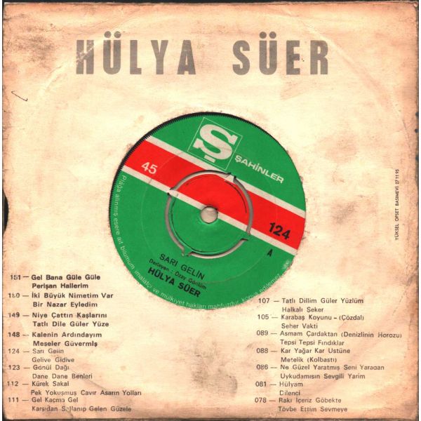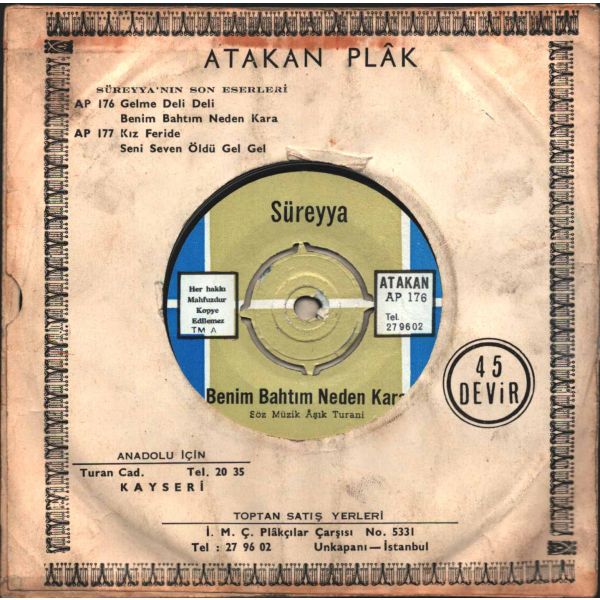 Tüm Plaklarımız; iç zarfları ve dış koruma ceketleriyle gönderilmektedir. Plağın her