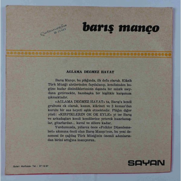 Tüm Plaklarımız; iç zarfları ve dış koruma ceketleriyle gönderilmektedir. Plağın her