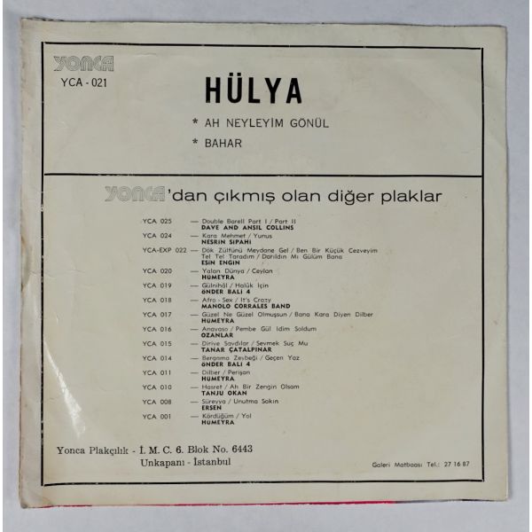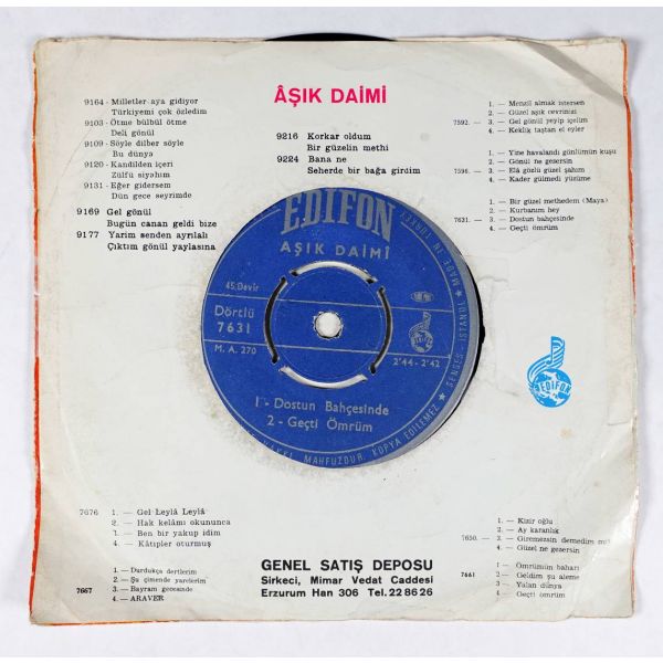 Tüm Plaklarımız; iç zarfları ve dış koruma ceketleriyle gönderilmektedir. Plağın her