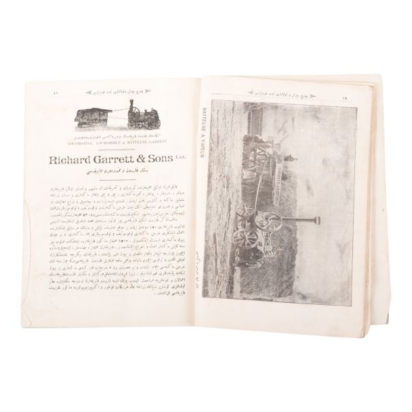 Kapağında ve künyesinde "Şark Demir ve İngiliz Limited Şirketi" kaşesi olan, "George Chisnell & Sons" limited şirketinin resimli ziraat araçları katalogu.