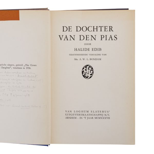 Halide Edip´in, ilk kez 1936 yılında "The Clown and his Daughter" ismiyle Londra´da yayınlanan ve Türkçeye "Sinekli Bakkal" adıyla çevrilen romanının, 1937 yılında Hollanda´nın Arnhem şehrinde basılan Flemenkçe baskısı...