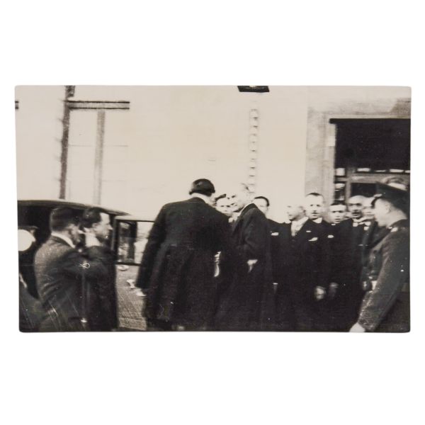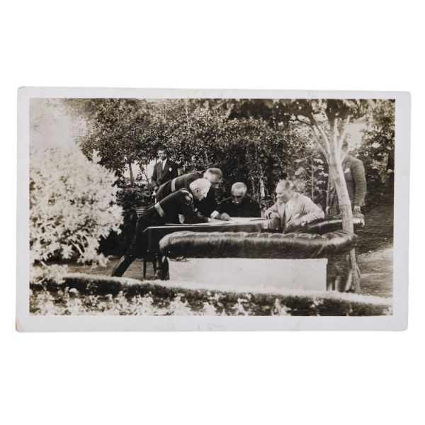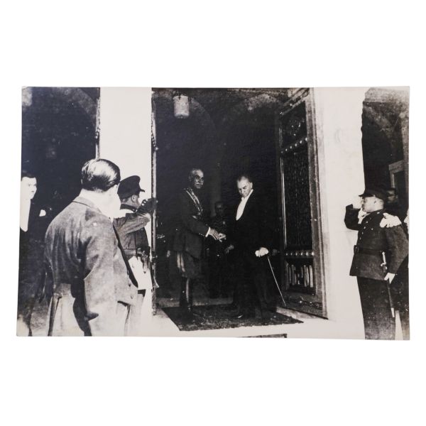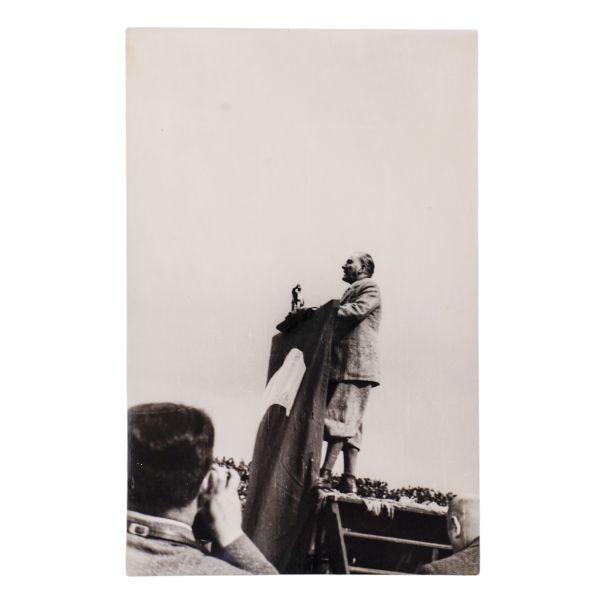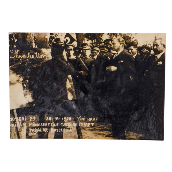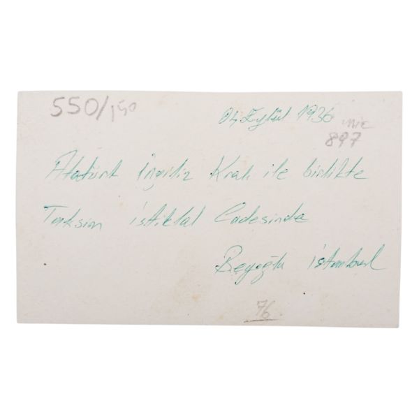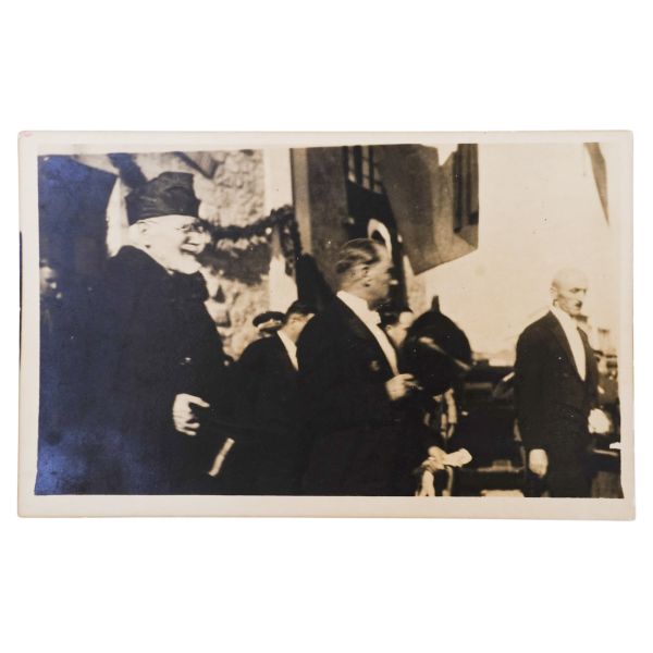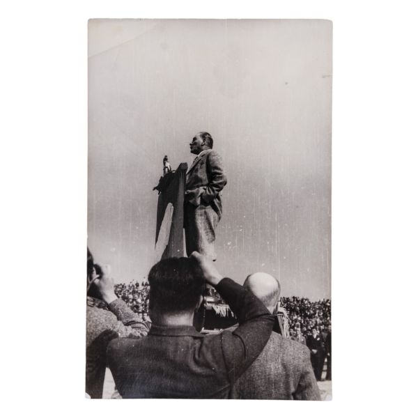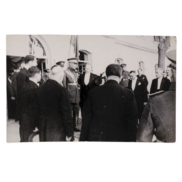Kartın arka yüzünde, matbu olarak, "Birinci Köy ve Ziraat Kalkınma Kongresi" ibaresi mevcuttur. Müzayedemizde yer alan bu parça, 27 Ocak 1938 tarihinde düzenlenen bu kongreye katılanlara armağan edilmiştir.