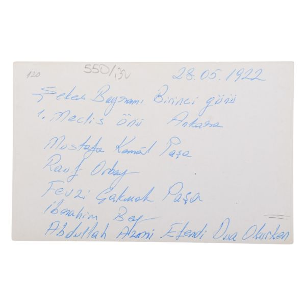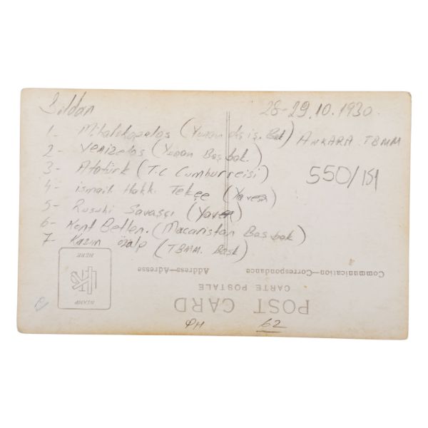 *İkinci baskıdır. Fotoğrafta yer alan isimler: Oturanlar sağdan sola; Mazhar Müfit Kansu, Hürev Sami Kızıldoğan, Ahmet Rüstem Bilinski, Bekir Sami Kunduh, Kadı Hasbi, Mustafa Kemal, Şeyh Hacı Fevzi, Rauf Orbay, Ömer Mümtaz; Arka sıralarda: Hami Danişmend, Recep Zühtü, Hüsrev Gerede, Ruşen Eşref Ünaydın, Nizamettin Bey, Mazlum Bey, Küçük Ethem Bey ve Yaver Muzaffer Kılıç.