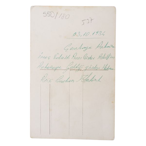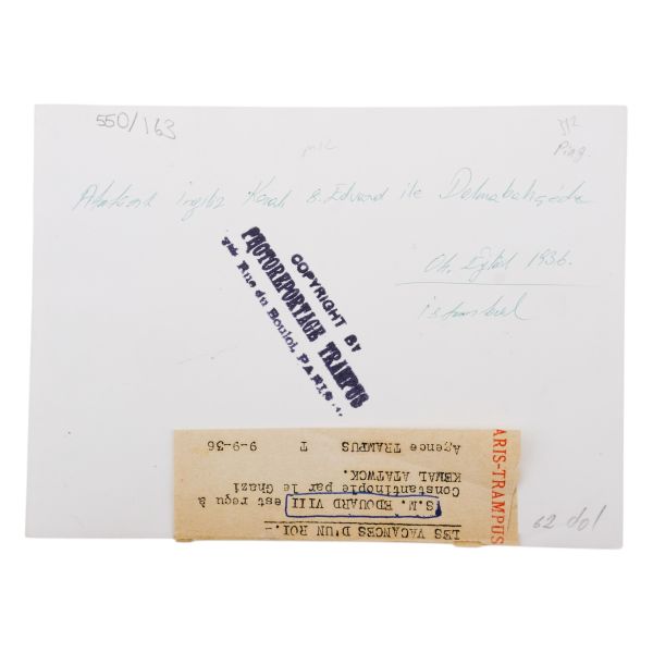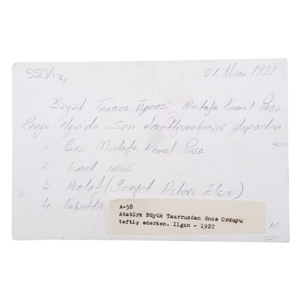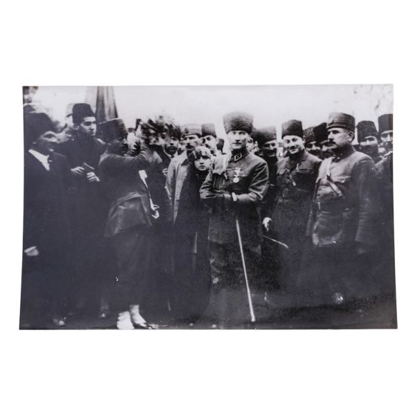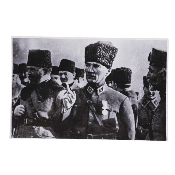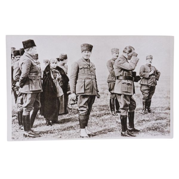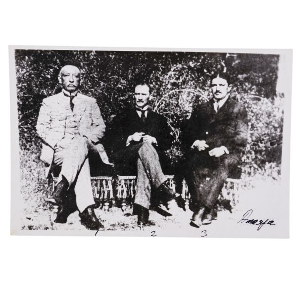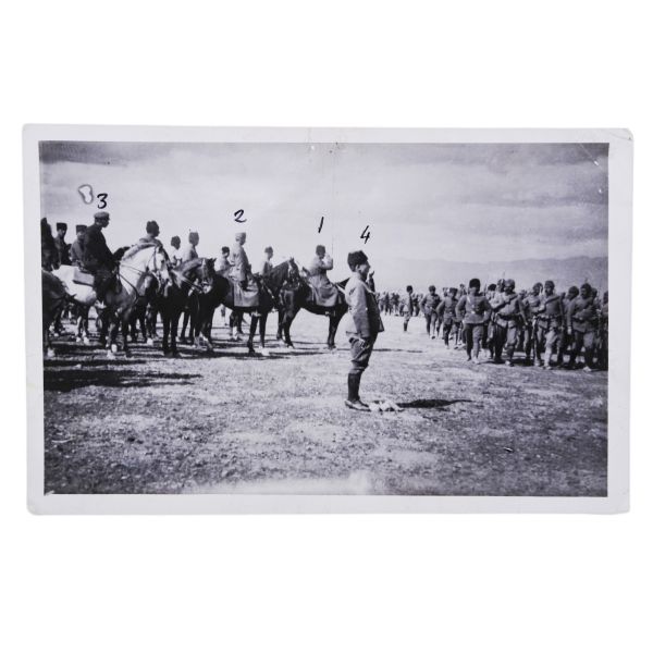 *İkinci baskıdır. Fotoğrafta numarayla işaretlenen isimler: 1) Mustafa Kemal Atatürk 2) İsmet İnönü 3) Arolov (Semyon İvanoviç Aralov, Sovyet askeri elçisi), 4) Fahrettin Altay