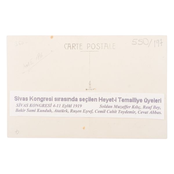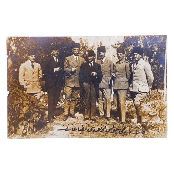 *İkinci baskıdır. Fotoğrafta yer alan isimler: Oturanlar sağdan sola; Mazhar Müfit Kansu, Hürev Sami Kızıldoğan, Ahmet Rüstem Bilinski, Bekir Sami Kunduh, Kadı Hasbi, Mustafa Kemal, Şeyh Hacı Fevzi, Rauf Orbay, Ömer Mümtaz; Arka sıralarda: Hami Danişmend, Recep Zühtü, Hüsrev Gerede, Ruşen Eşref Ünaydın, Nizamettin Bey, Mazlum Bey, Küçük Ethem Bey ve Yaver Muzaffer Kılıç.