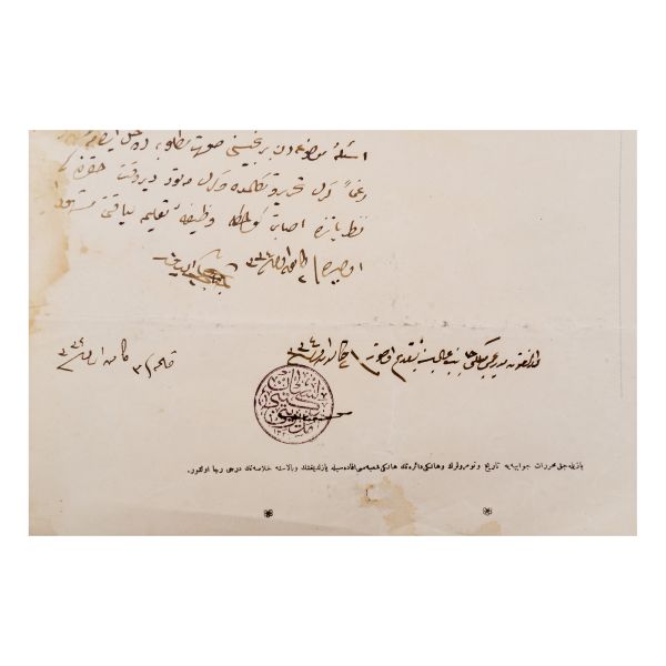 Beşiktaş İttihat ve Terakki Mektebi´ne Fransızca muallimi olarak atanacak bir öğretmenin, Lisan Mektebi muallimlerinden Cenap Şehabettin tarafından sınav edilmesi istenmektedir. Dilekçeye cevaben
