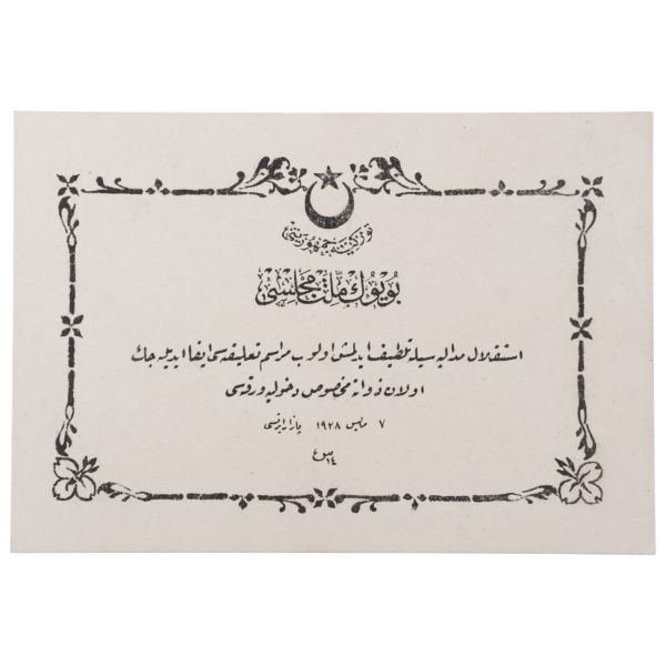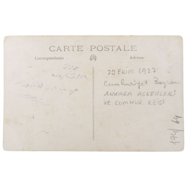 Mustafa Kemal Atatürk portresinin kenarına iliştirilmiş fotokartlarda Kurtuluş Savaşı komutanları görülmektedir. Tevfik Fikret´in kartta yazılı dizeleri: "Koca bir kavmin olur hâris-i istiklâli / Koca bir memleketin ırzı, hayatı, malı / Hep ona vâbeste kalır."