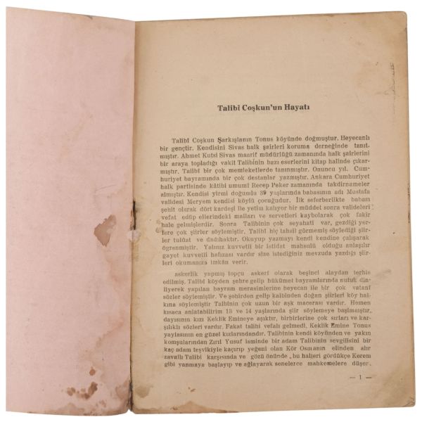 "Bu kitap halk şairi Talibî Coşkun´un Orman Çiftliği, Marmara, Mamak, Kayaş ve Çubuk barajına ait yeni ve orjinal tahassürlerini bildiren şiirlerile Ankara cıvarına ait muhtelif resimleri ihtiva etmektedir."