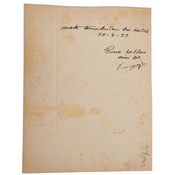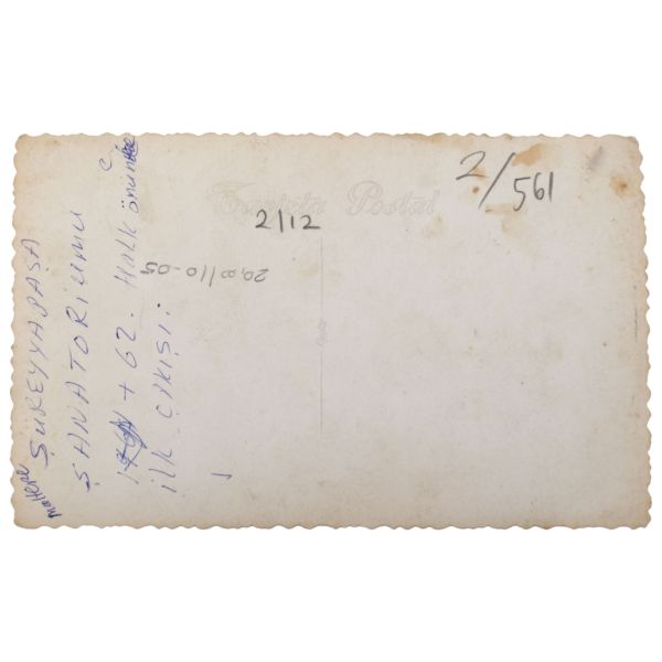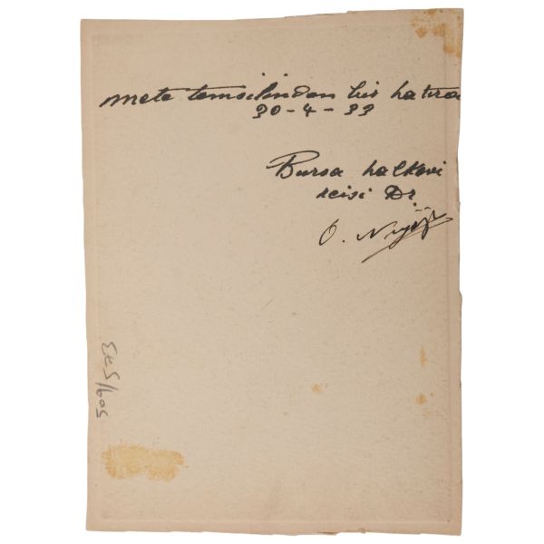 Fotoğrafın altında, "Sevgili Ruhi ağabey, her şeye rağmen, ne güzel bir gündü" ithafı ve arka yüzündeyse, "Maltepe Süreyya Paşa Sanatoryumu halk önünde ilk çıkışı" yazılıdır.