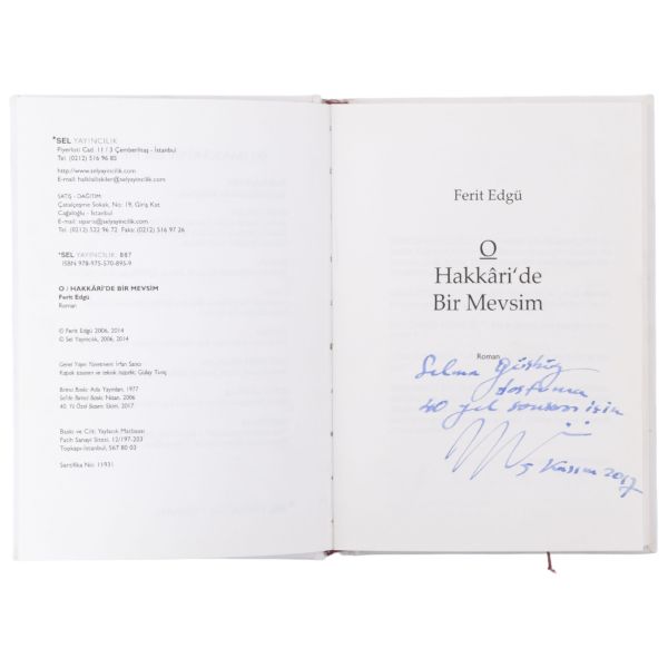 "Selma Gürbüz dostuma 40 yıl sonrası için." ithafıyla, 5 Kasım 2017 tarihinde imzalanan kitabın içine aynı gün kaleme alınmış bir mektup da iliştirilmiştir. Mektup metni: "Sevgili Selma, Dün, sağlığınla ilgili haberi aldığımda beynimden vurulmuşa döndüm. Neyse ki, sendeki yaşatma gücün, bu tür kötülüklerin sırtını yere getirecek nitelik ve nicelikte olduğunu biliyorum, buna inanıyorum. Çünkü sanat maceramız henüz bitmedi. Seni, tüm dostluk duygularımla kucaklıyor, sabır ve metanet diliyorum. Ferit."