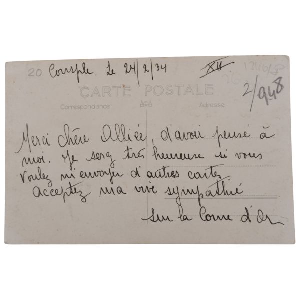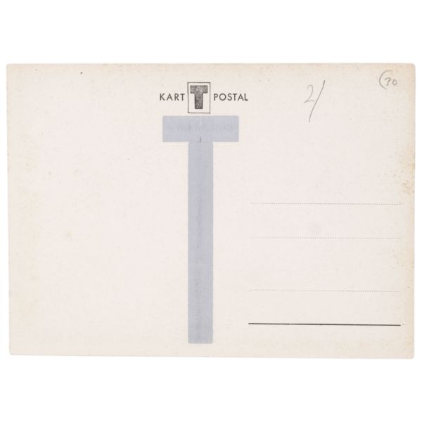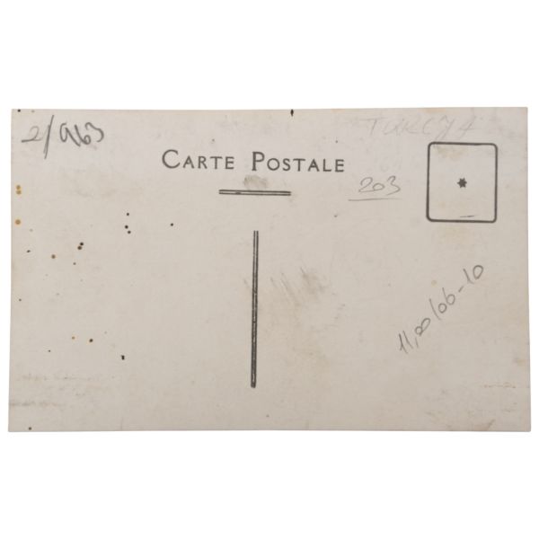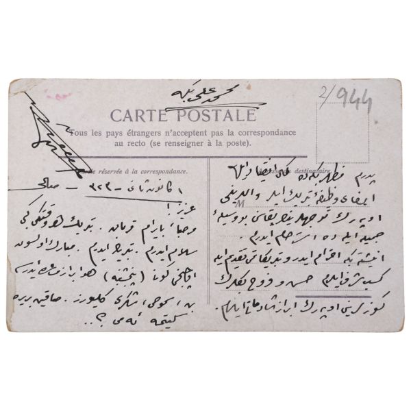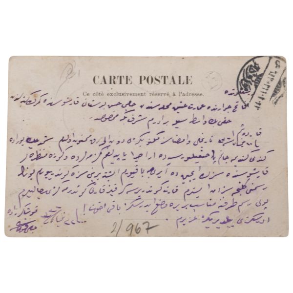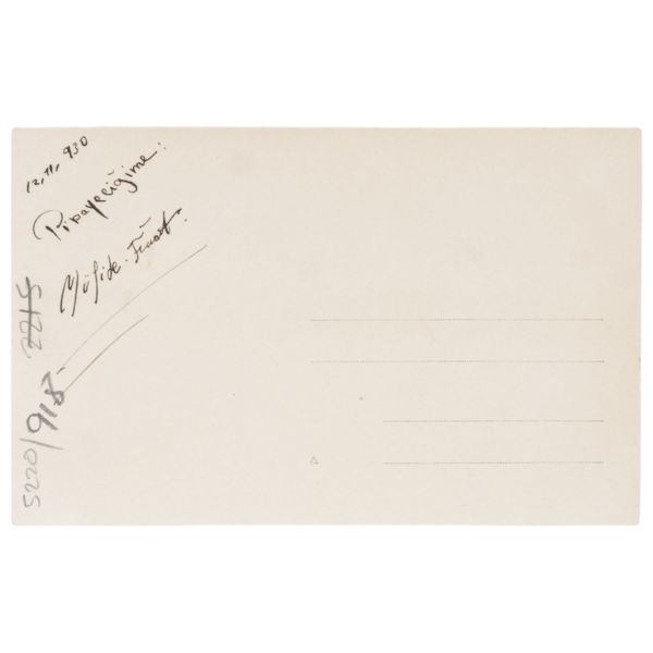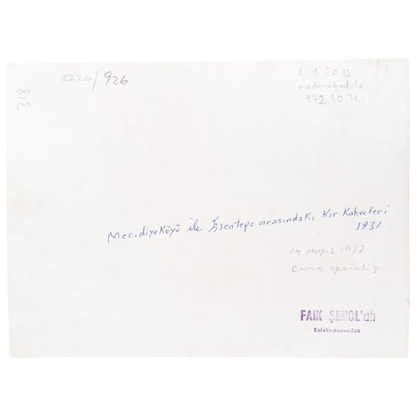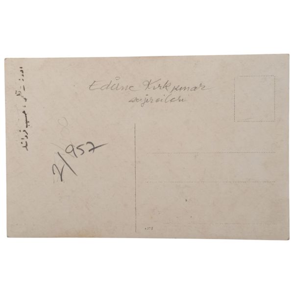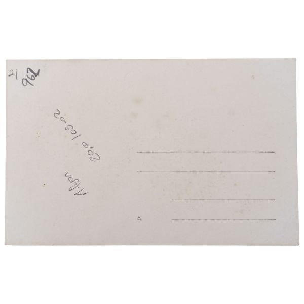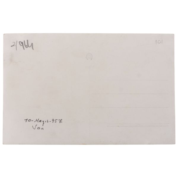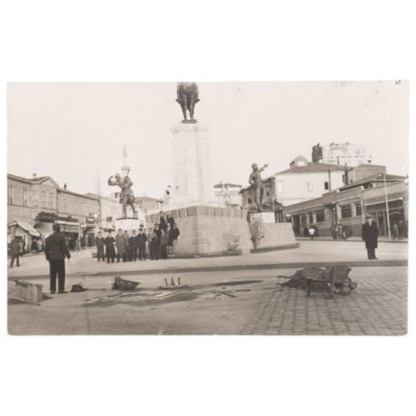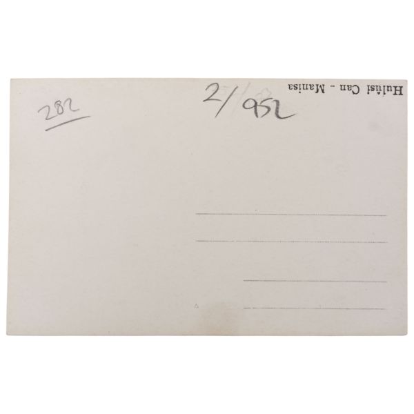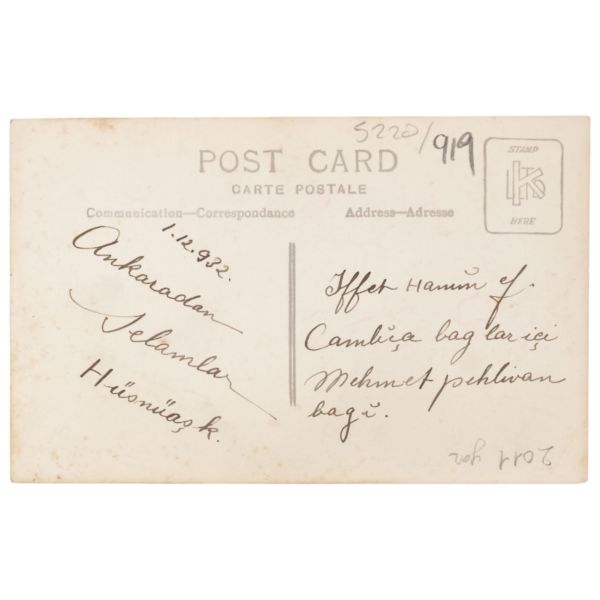 Arka yüzünde, "Muammerciğim, size reis-i cumhur hazretlerinin heykelin bulunduğu caddeyi gösteren bir kartı hatıra olmak üzere takdim ederek gözlerenizden öperim. 12 Teşrinisani 1933" ithafı yazılıdır.