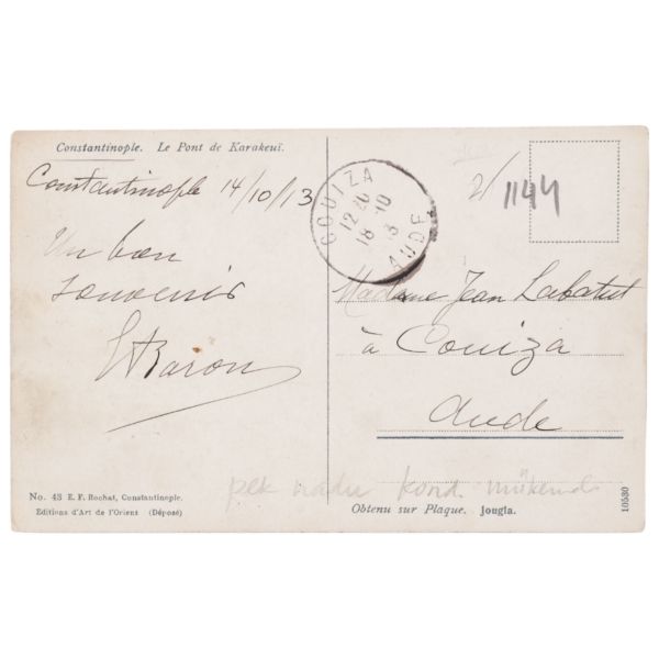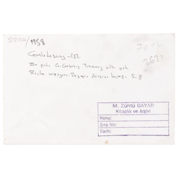 Sol tarafta Ben-Hur filminin tanıtım afişinin görüldüğü fotoğraf, 1940´lı yılların ikinci baskısıdır. Arka yüzüne "M. Zühtü Bayar Kitaplık ve Arşivi" kaşesi vurulmuş ve el yazısı notlar kaleme alınmıştır: "Bu foto Ç. (Çelik) Gülersoy´un Tramvay alb. (albümünde) yok..."
