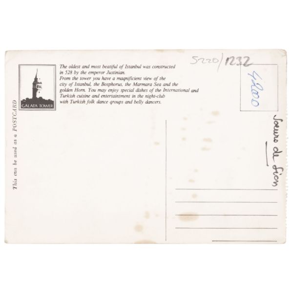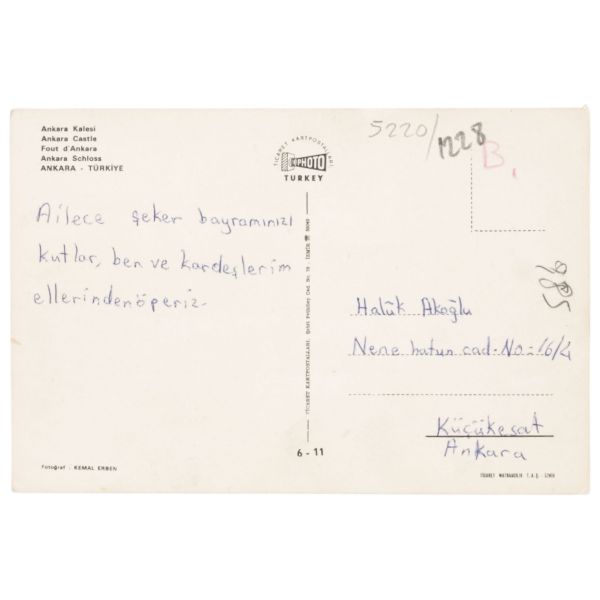 "Canım ağabeyime, İstanbul Kasımpaşa hava güzel ve bu güzel günde cami önünde çekilen bu resmimle bayramınızı kutlarım yegenlerimi öper yengeme selam ederim. Kardeşin Necati."