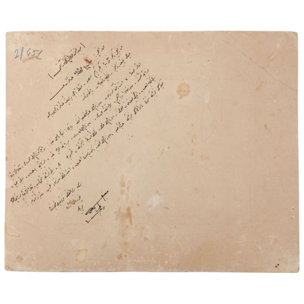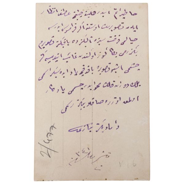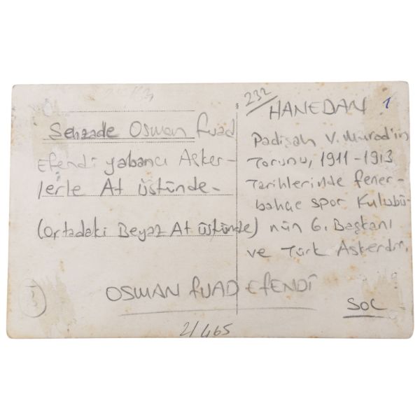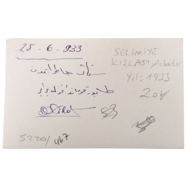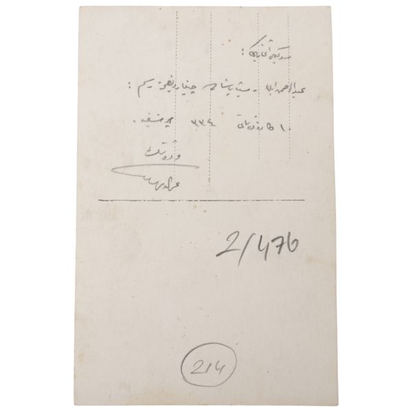 Fotoğrafın arka yüzünde Osmanlıca ithaf yer almaktadır.