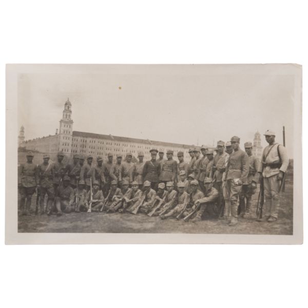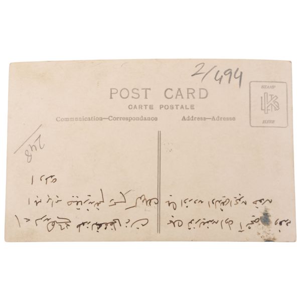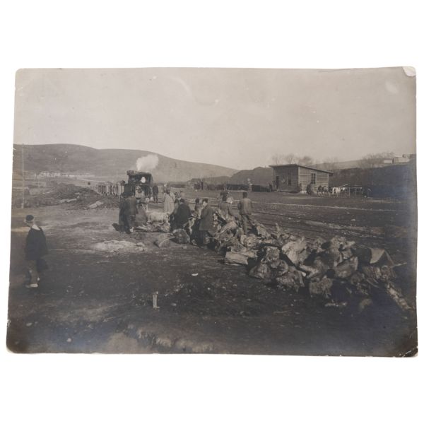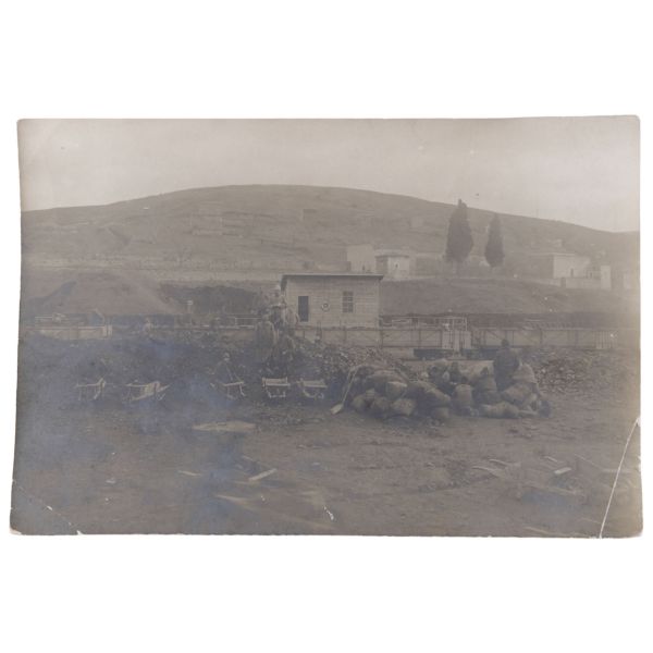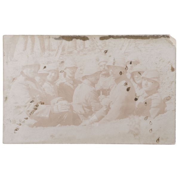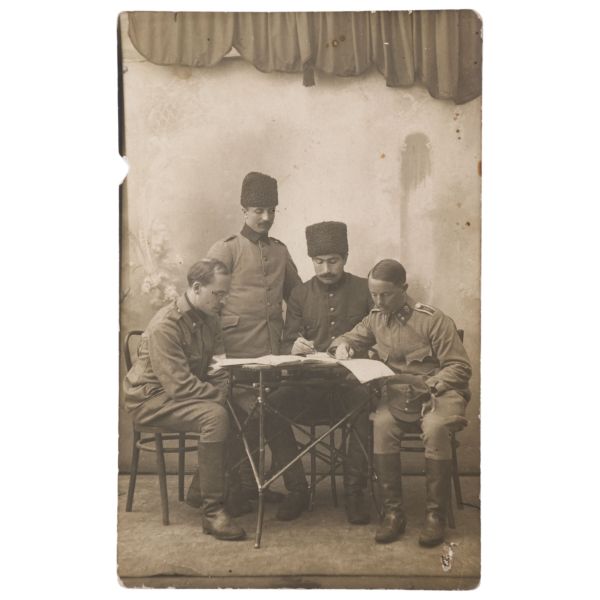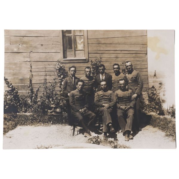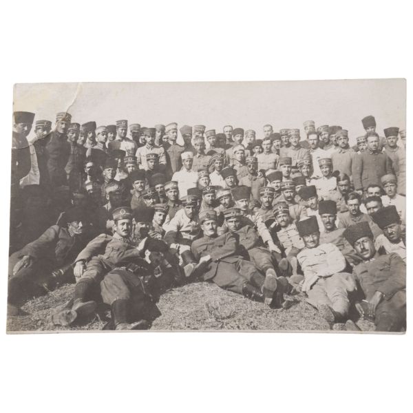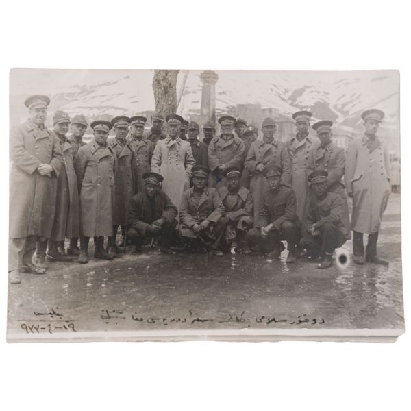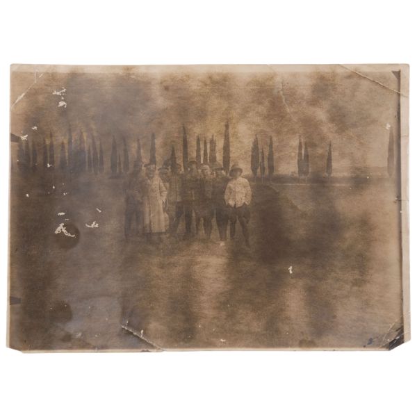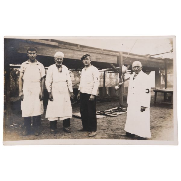 Fotoğrafın arka yüzünde, "Yemek tuzlanmadan evvel aşçı ve hademe ile beraber çıkarttığım resim. Gömlek pek uzun olduğu için hoş olmadı." yazılıdır.
