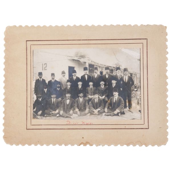 Fotoğrafın altında şahısların imzası ve "Muhterem Kardeşimiz Sıtkı Bey´e" ithafı yer almaktadır.