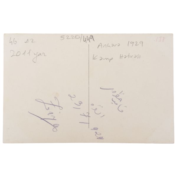 Arka yüzünde "Kamp hatırası- Ankara 23-7-1929" notu düşülmüştür.