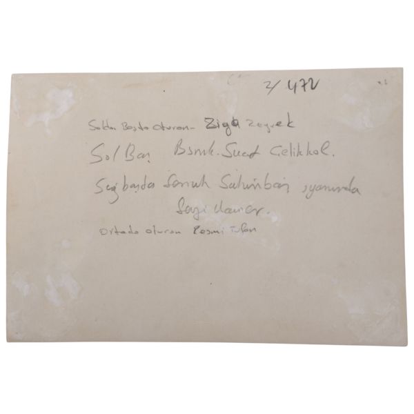 Arka yüzünde fotoğrafta yer alanların isimleri yazılıdır.