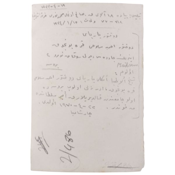 Arka yüzü Osmanlıca açıklamalı.