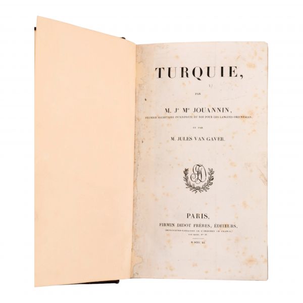 Dönemin Osmanlı coğrafyası üzerine uzmanlaşmış Fransız oryantalist ve coğrafyacı Jules (Jean-Marie) Jouannin´in, Osmanlı İmparatorluğu’nun 19. yüzyıl başlarındaki durumunu; coğrafya, tarih ve etnografya ekseninde ayrıntılı biçimde ele aldığı çalışması. Kitap içinde, bazıları katlanır çok sayıda gravür ve harita mevcuttur. Sırtı deri, kapakları bez dönem cildinde.