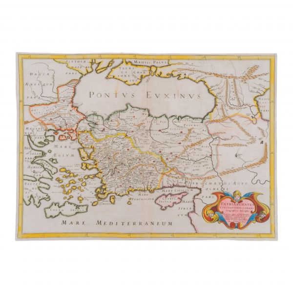 Melchior Tavernier tarafından 1640-1650 yılları civarında Paris'te hazırlanan "Patriarchatus Constantinopolitani Geographica Descriptio"... 17. yüzyıla ait en önemli Türkiye haritalarından biridir. Bakır gravür (engraving) tekniğiyle basılmış, renklendirme döneminin el işçiliğidir.