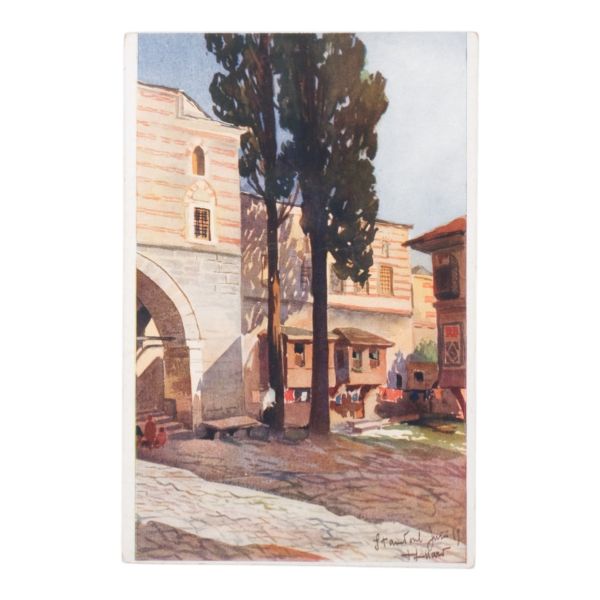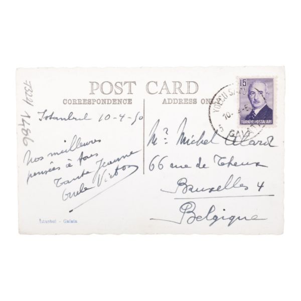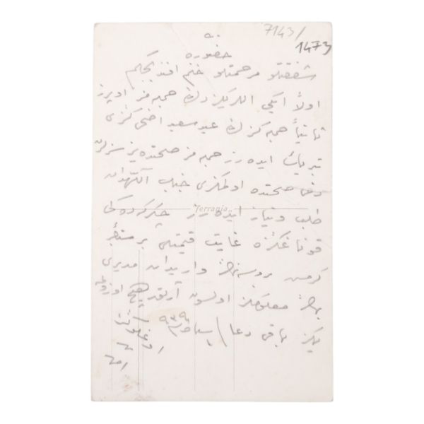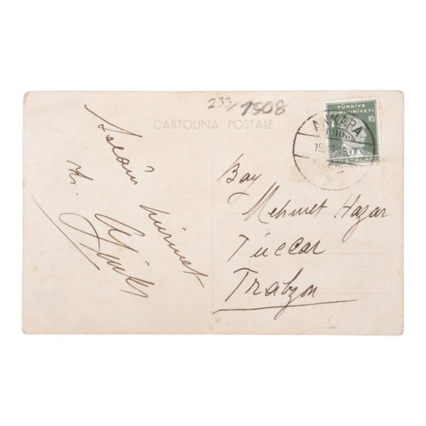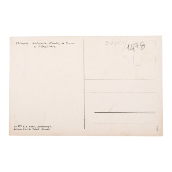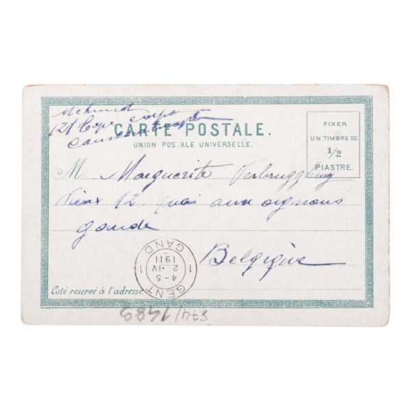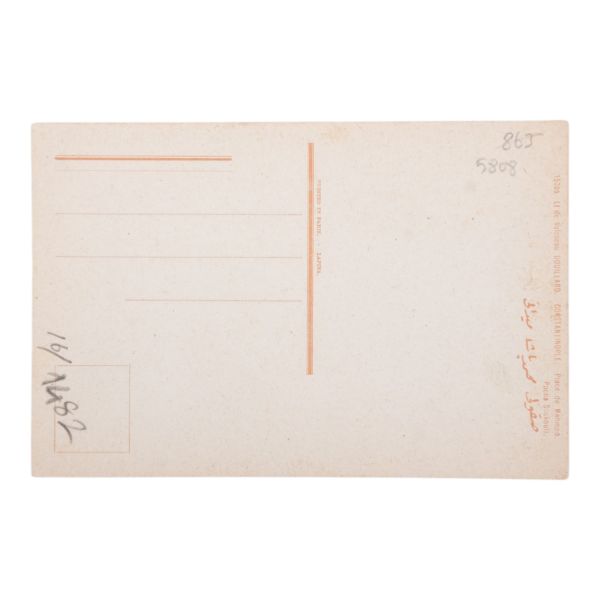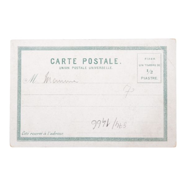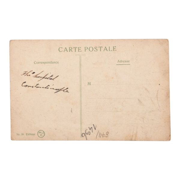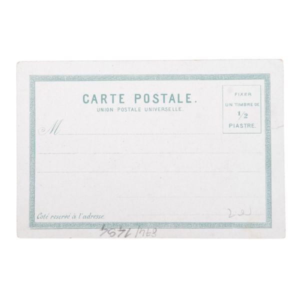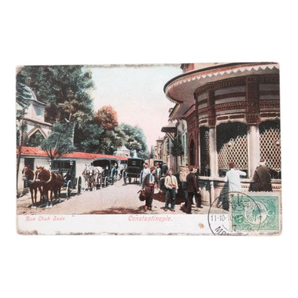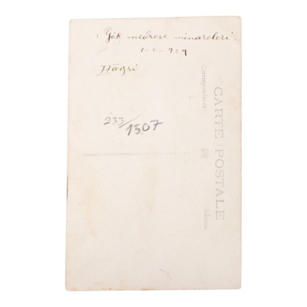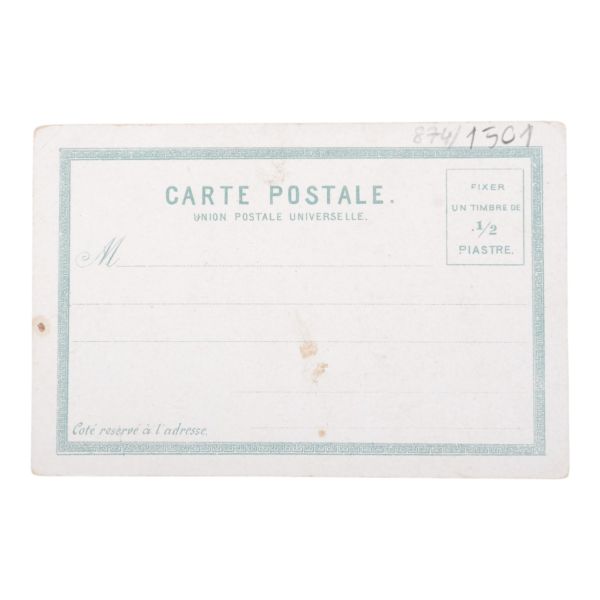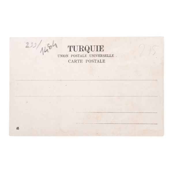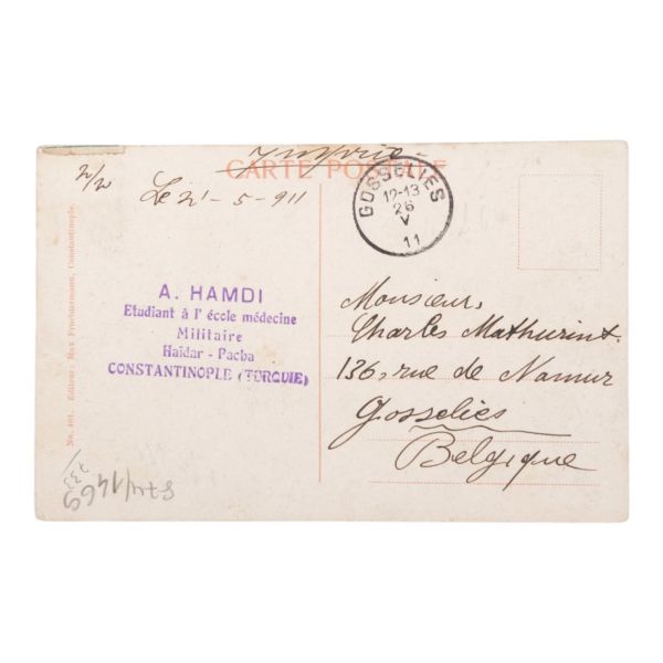 Postadan geçmiş. Arka yüzü "A. Hamdi - Etudiant a l´ecole medecine Militaire - Haidar-Pacha, Constantinople (Turquie)" damgalı.