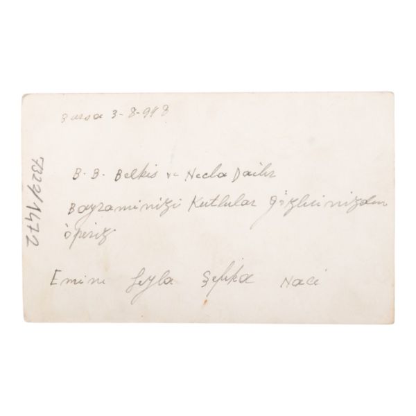 Arka yüzü Osmanlıca mektuplu. *Fotokart yüzeyinde kırık ve küçük bir yırtık mevcuttur.