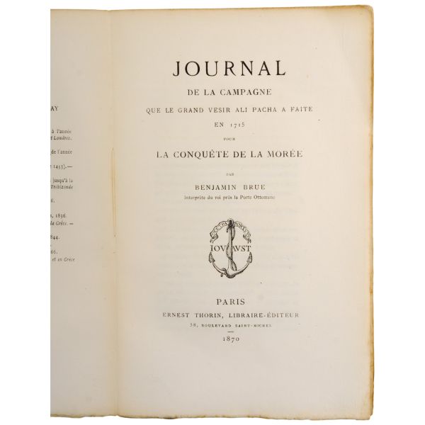 Osmanlı Venedik Savaşları sırasında 1715 yılında Mora seferiyle yarımadayı yeniden fetheden Veziriazam Ali Paşa´nın günlüğünün Fransızca tercümesi. Mütercim, Osmanlı Devleti´ne de tercümanlık yapmıştır.