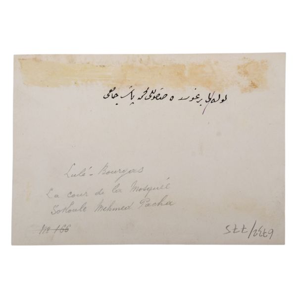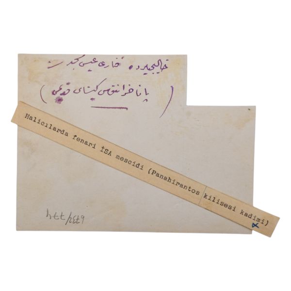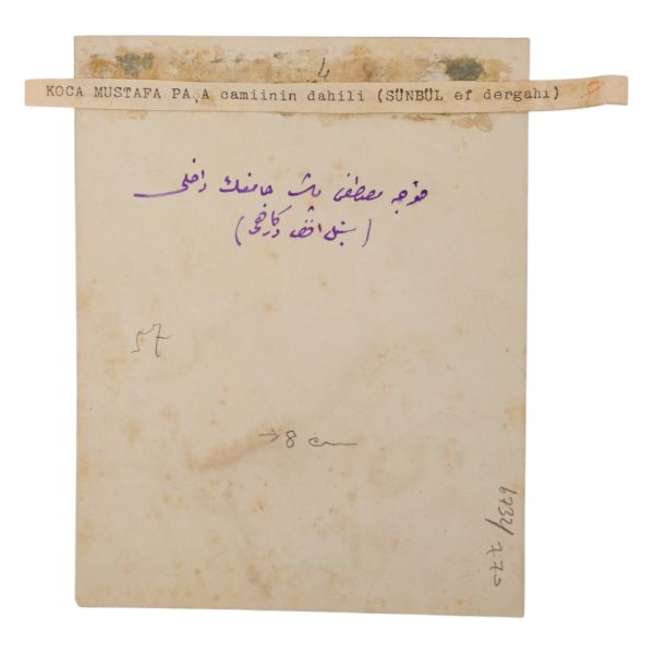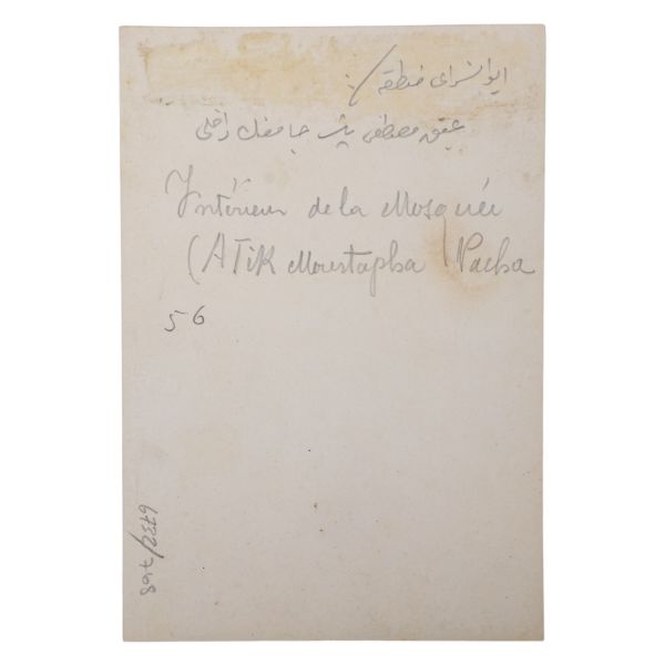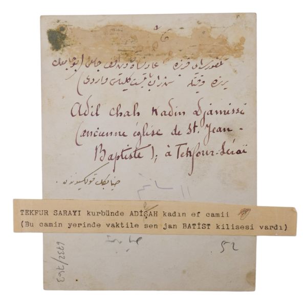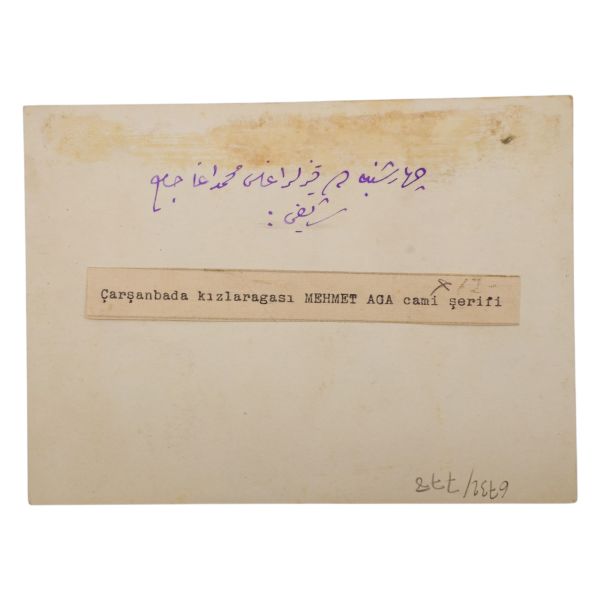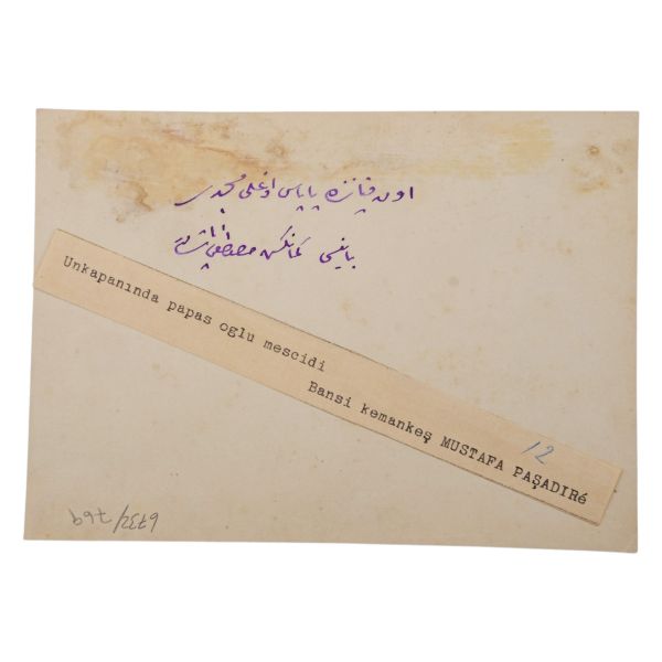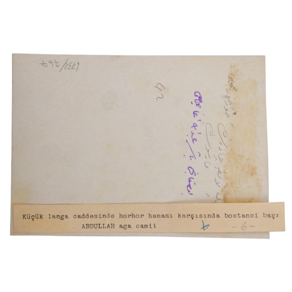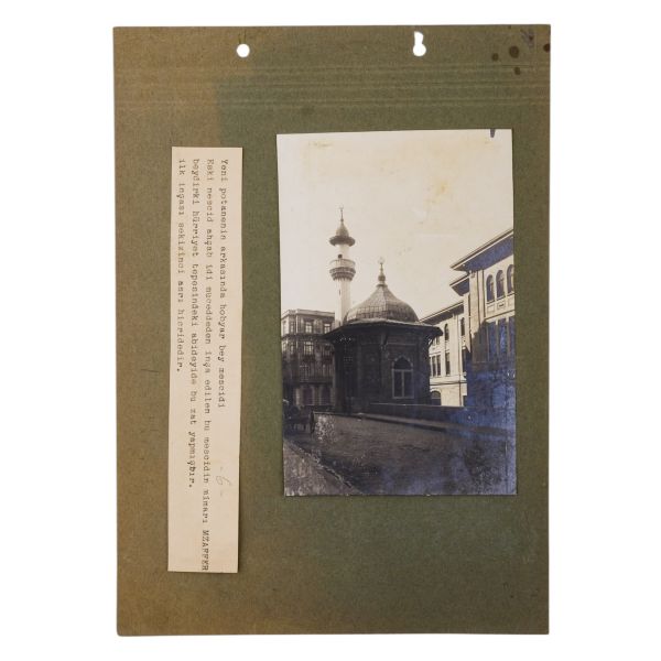 Fotoğrafın arka yüzüne düşülen el yazısı Osmanlıca notta ve notun paspartuya yapıştırılan matbu Latin harfli Türkçe açıklama metninde, günümüzde dahi birçok kaynakta yanlış olarak Mimar Vedat Tek´in eseri olarak belirtilen Hobyar Mescidi´nin gerçek mimarının, Hürriyet Abidesi anıtını da inşa eden Mimar Muzaffer Bey olduğu vurgulanmıştır: "Yeni Postanenin arkasında Hobyar Bey Mescidi. Eski mescid ahşab idi müceddeden (yeni olarak) inşa edilen bu mescidin mimarı Muzaffer Beydir ki Hürriyet Tepesindeki abideyi de bu zat yapmıştır. İlk inşası sekizinci asrı hicridedir."