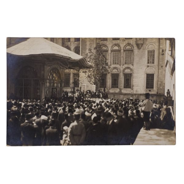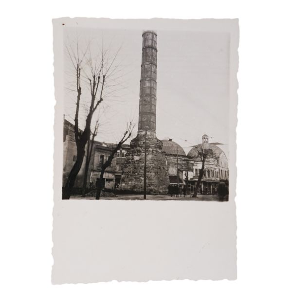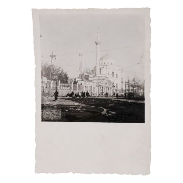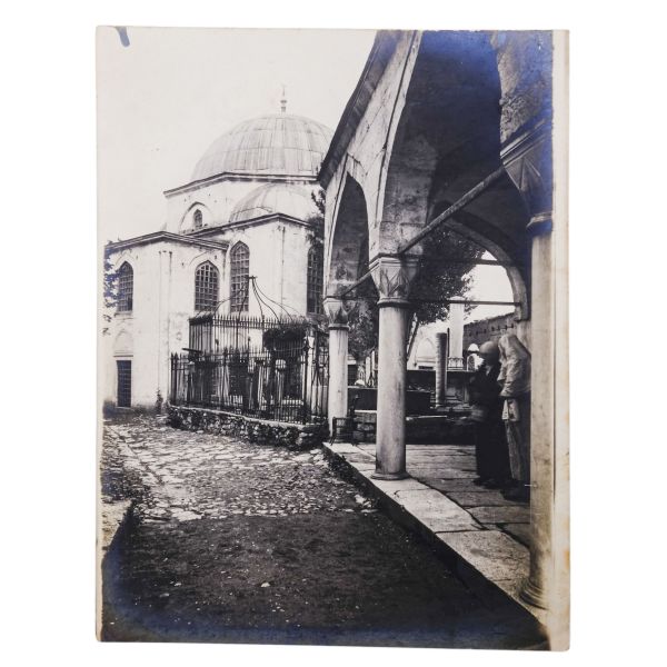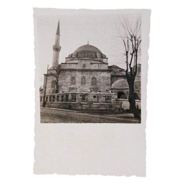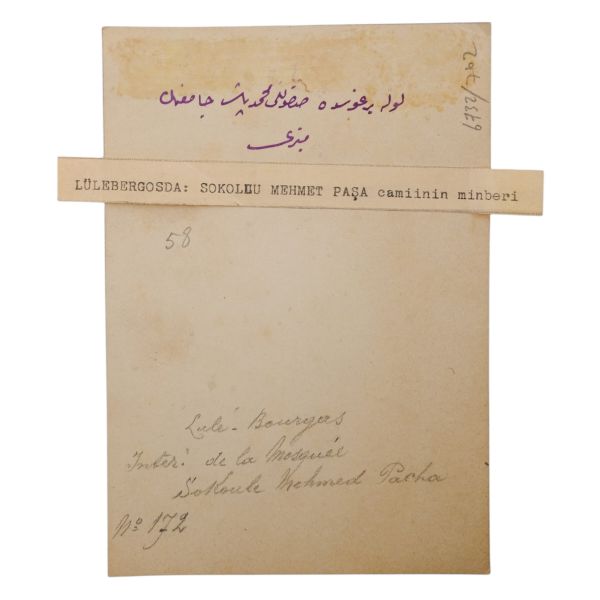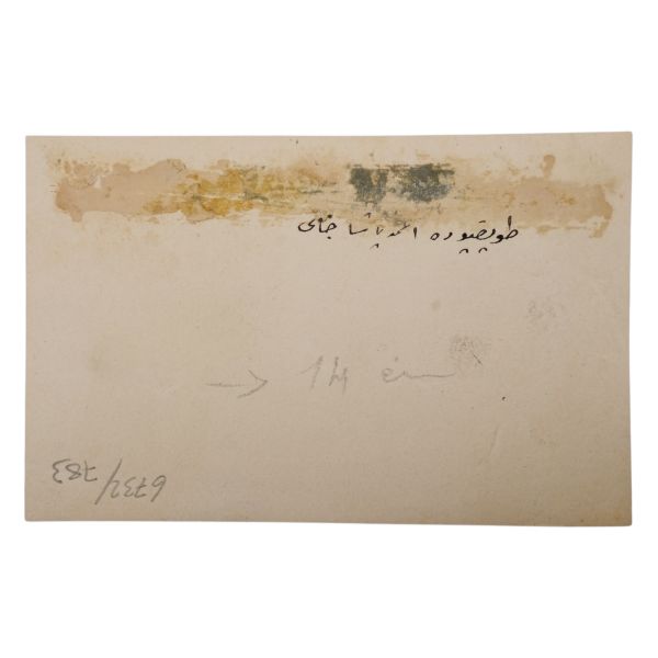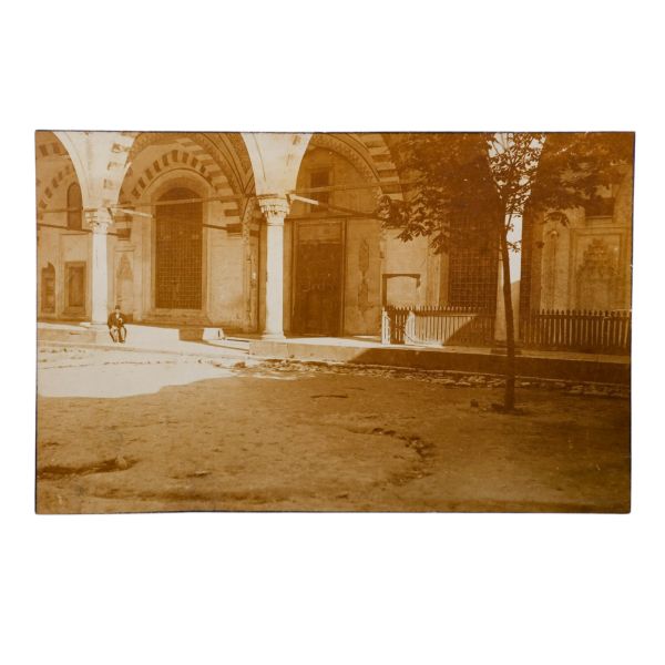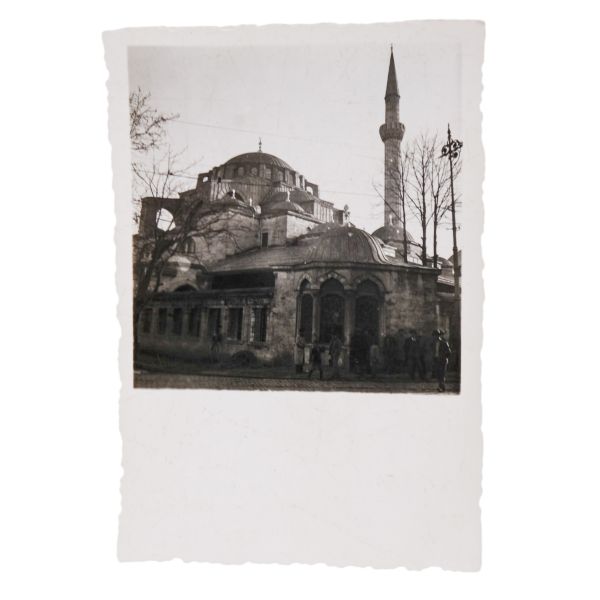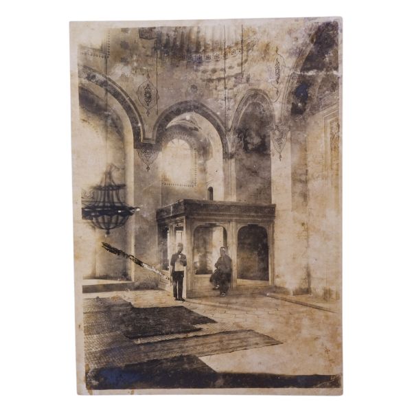 Fotoğrafın arka yüzüne düşülen el yazısı Osmanlıca notta ve notun paspartuya yapıştırılan matbu Latin harfli Türkçe açıklama metninde, günümüzde dahi birçok kaynakta yanlış olarak Mimar Vedat Tek´in eseri olarak belirtilen Hobyar Mescidi´nin gerçek mimarının, Hürriyet Abidesi anıtını da inşa eden Mimar Muzaffer Bey olduğu vurgulanmıştır: "Yeni Postanenin arkasında Hobyar Bey Mescidi. Eski mescid ahşab idi müceddeden (yeni olarak) inşa edilen bu mescidin mimarı Muzaffer Beydir ki Hürriyet Tepesindeki abideyi de bu zat yapmıştır. İlk inşası sekizinci asrı hicridedir."